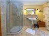 Das große Badezimmer Ihrer Urlaubsunterkunft ist mit WC, Badewanne und einer separaten Dusche ausgestattet.