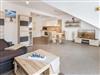 Die voll ausgestattete Küche, welche sich offen an den Wohnbereich anschließt, stellt Ihnen alles zur Verfügung, was Sie für einen Kochabend benötigen; neben der Geschirrspülmaschine, dem Kühlschrank und dem Backofen erwarten Sie zahlreiche Küchenkleingeräte. Das gemütliche Doppelbett ist mit hochqualitativen Matratzen ausgestattet und auch ein Fernseher ist vorhanden. Der geräumige Kleiderschrank bietet genügend Platz für Ihre Lieblingskleidungsstücke.