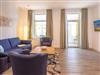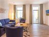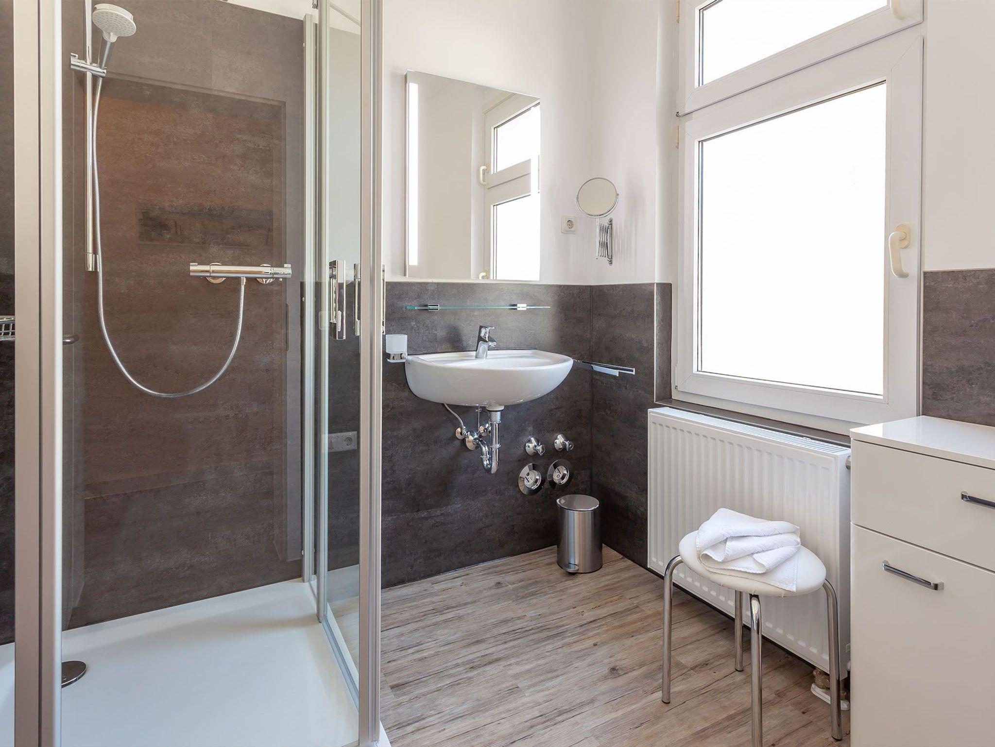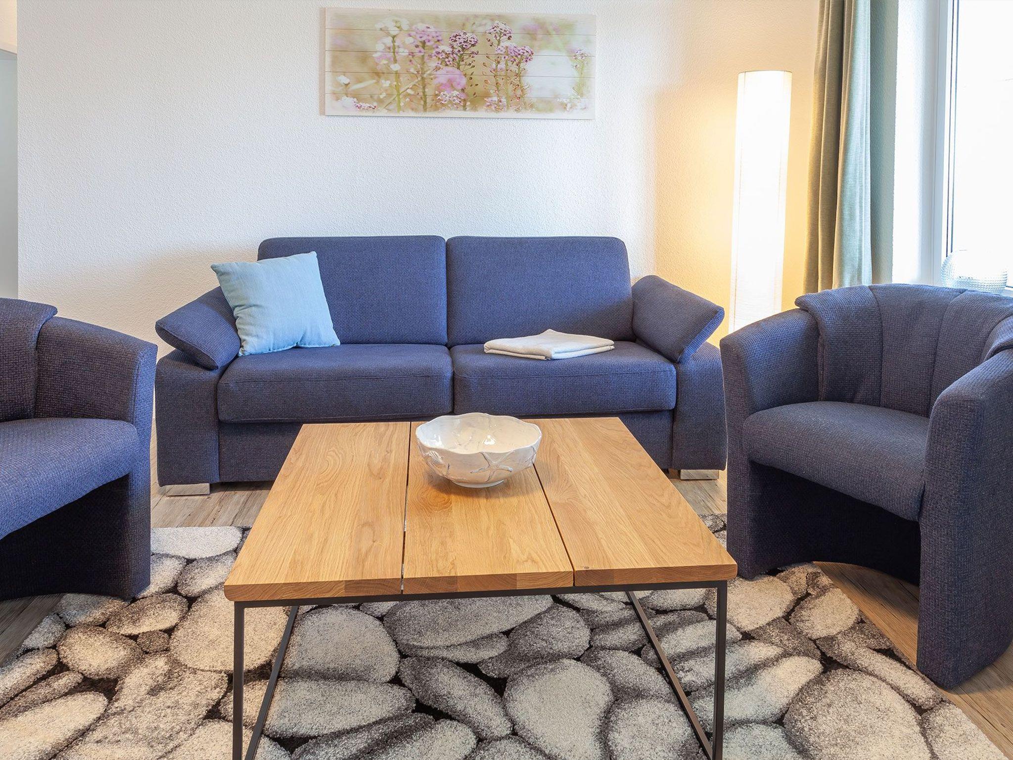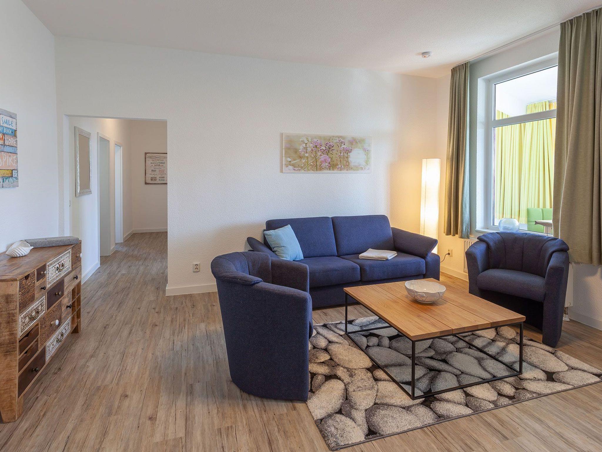 Die in der Villa Meeresgruss gelegene Ferienwohnung bietet auf 70qm Platz für bis zu 4 Personen. Eine Aufbettung zur 3. und 4. Person befindet sich im offenen Wohnbereich, dieser ist ausgestattet mit einer Schlafcouch (Federkernauflage). Der Wintergarten lädt mit Blick auf die Wilhelmstrasse zum Verweilen ein. Die vollausgestattete Einbauküche im Wohnbereich lässt keine Wünsche offen, hier können Sie gemeinsam kochen und den Abend bei einem Glas Wein im Wintergarten ausklingen lassen.
