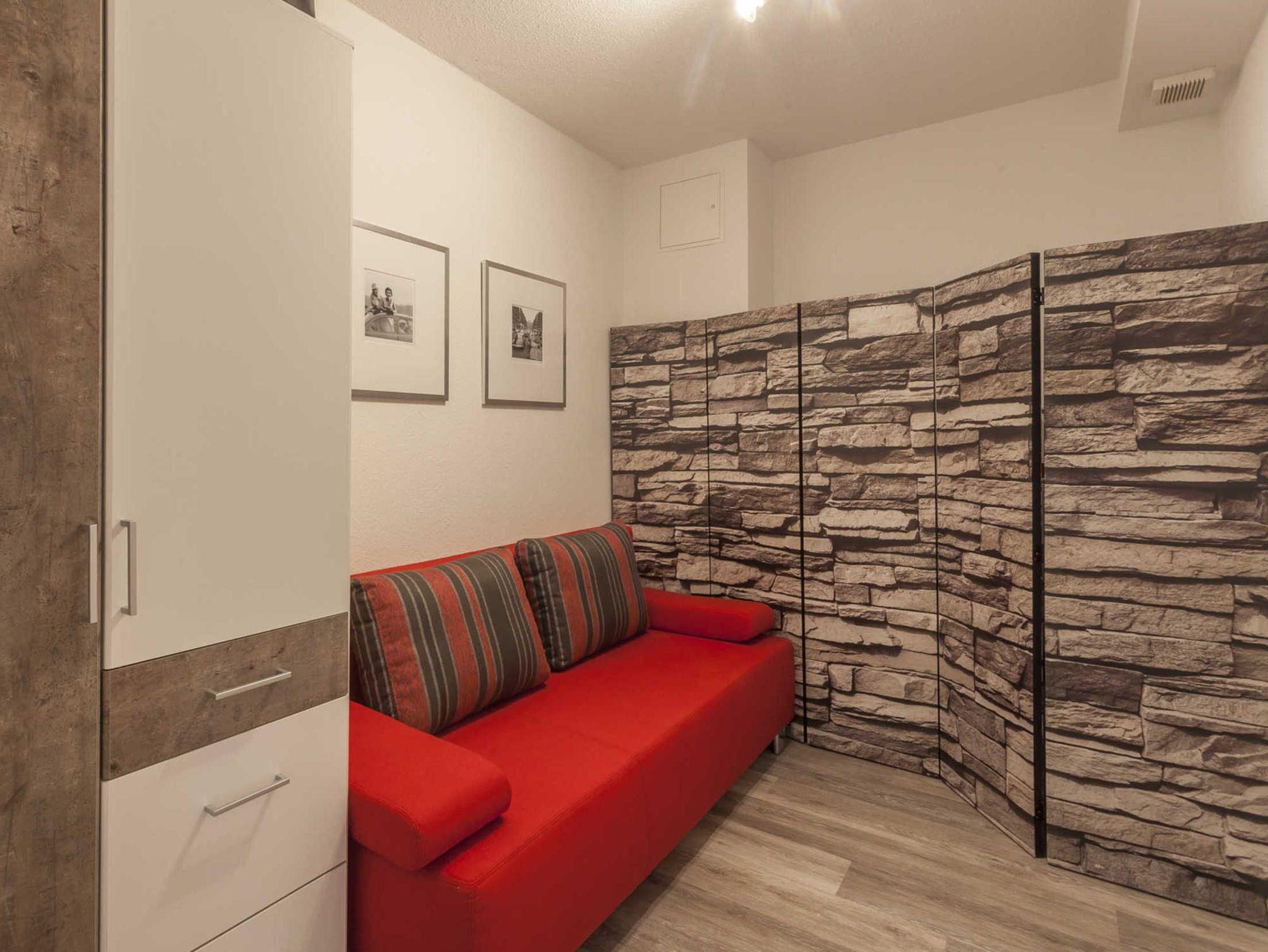 In einem separtem Raum (ohne Fenster) befinden sich außerdem eine Waschmaschine, die genutzt werden kann, und eine weitere Couch. Die Couch bietet bequem einem Kind, bis 7 Jahre, Platz zum schlafen.