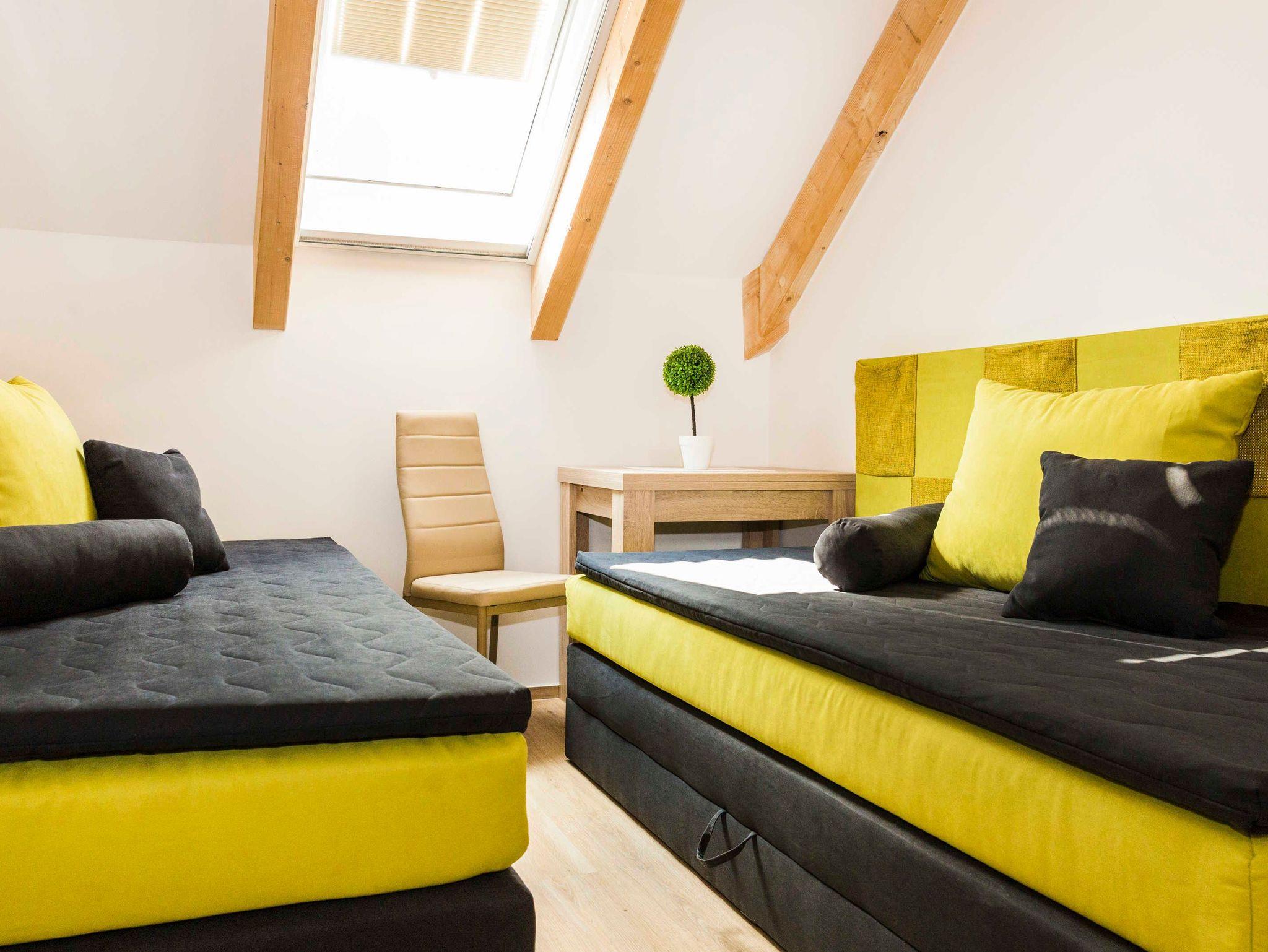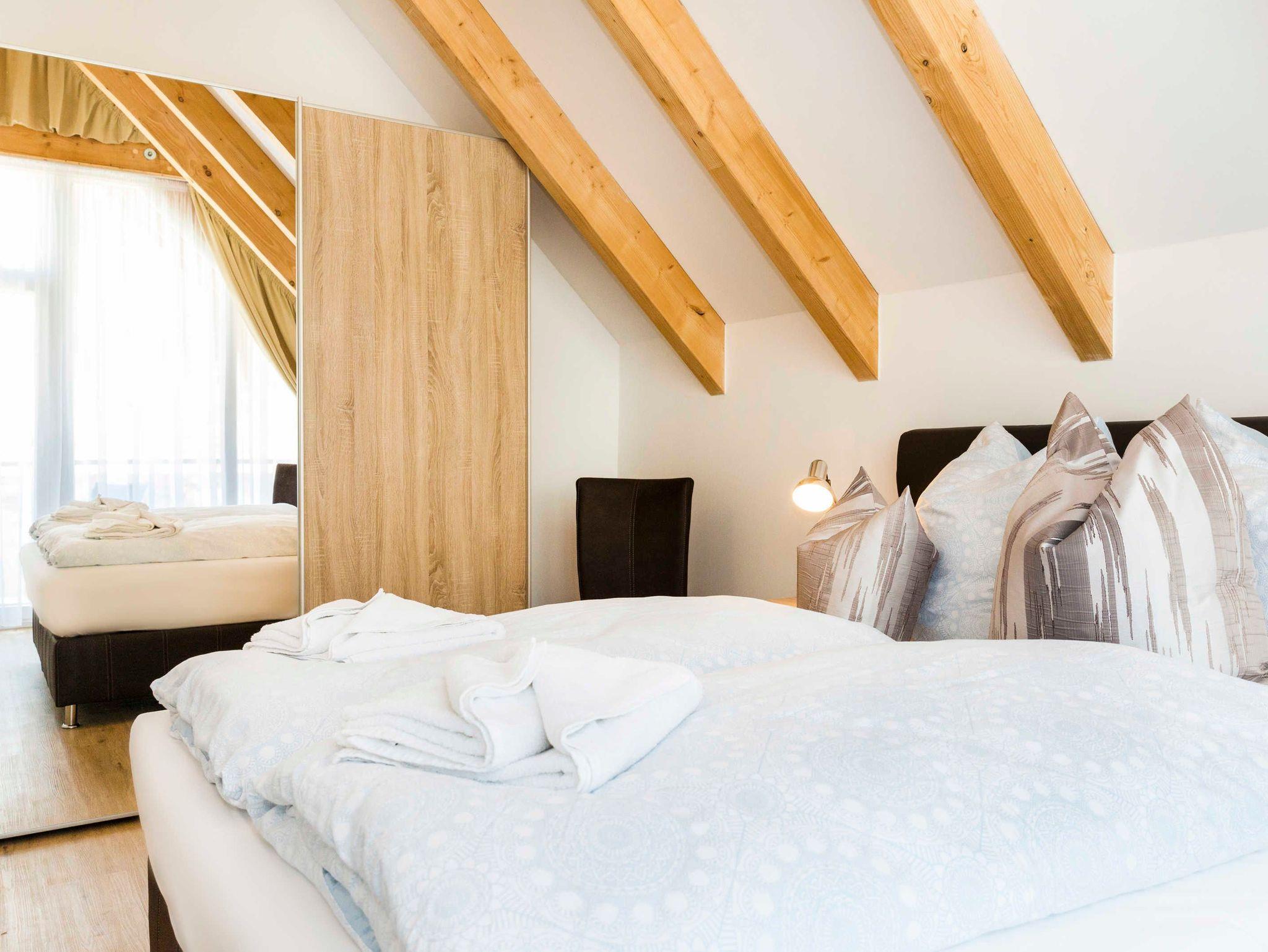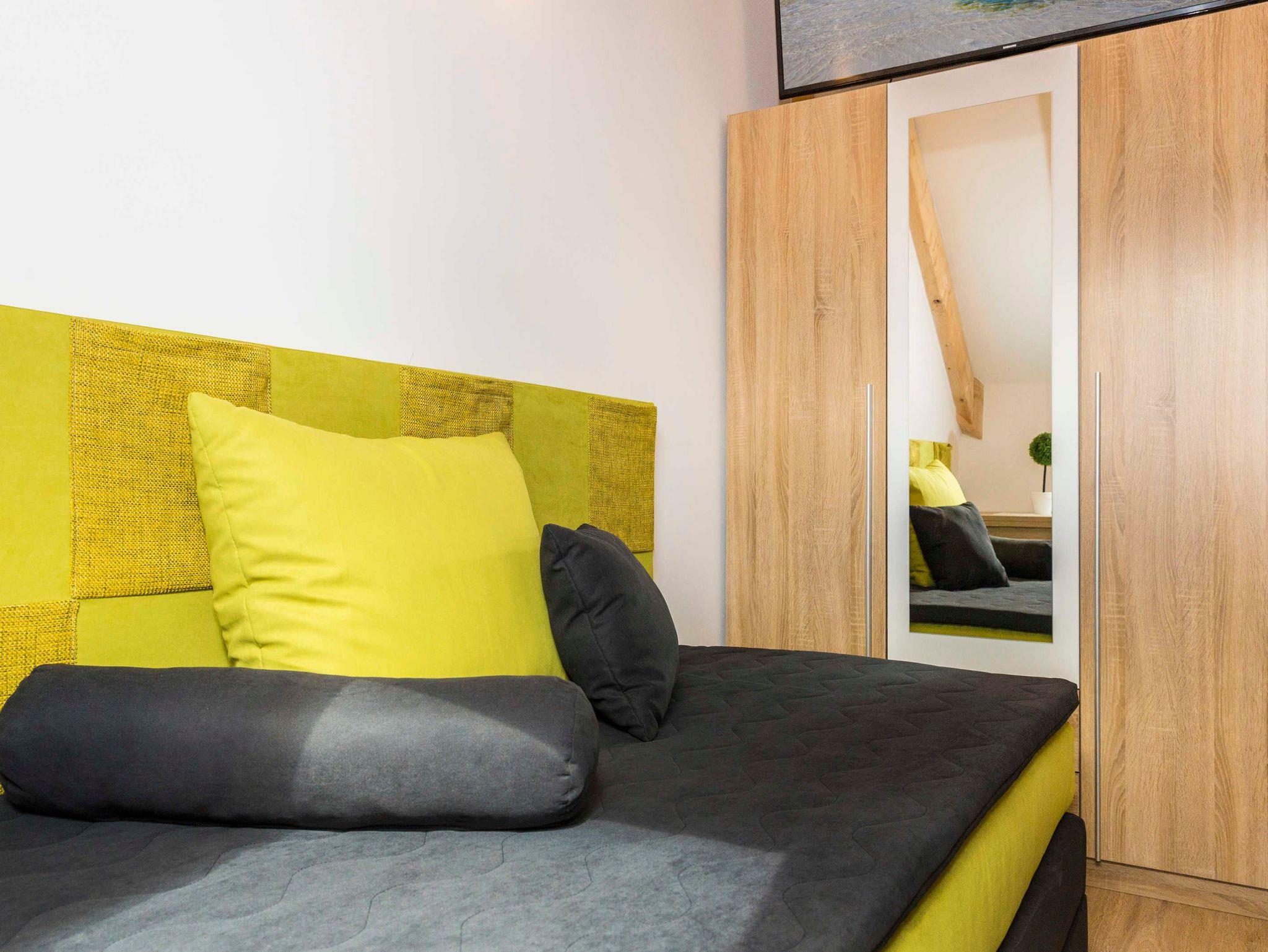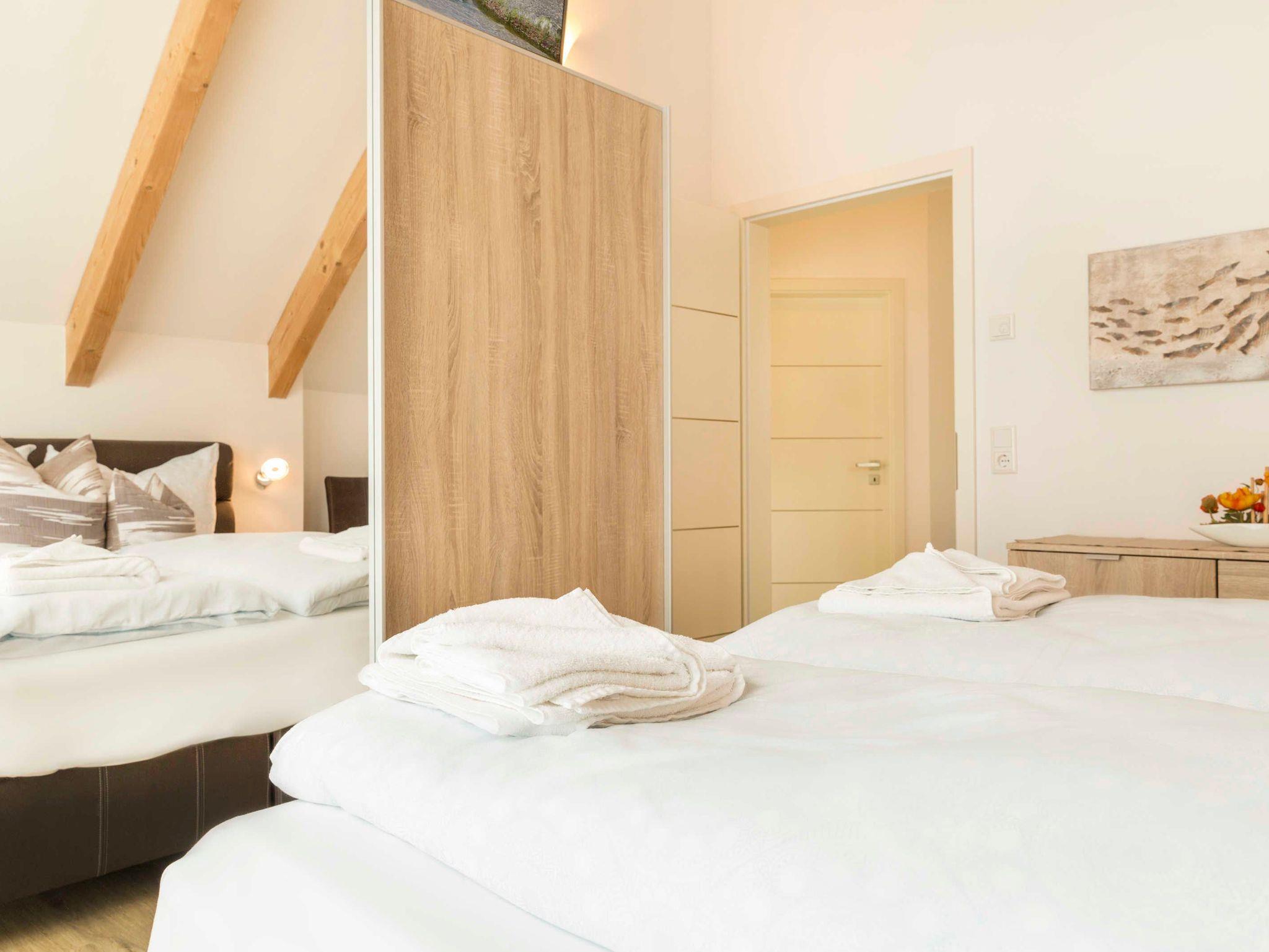 Im dritten Schlafzimmer stehen Ihnen 2 einzelne Boxspringbetten (90cm x 200cm) zur Verfügung.