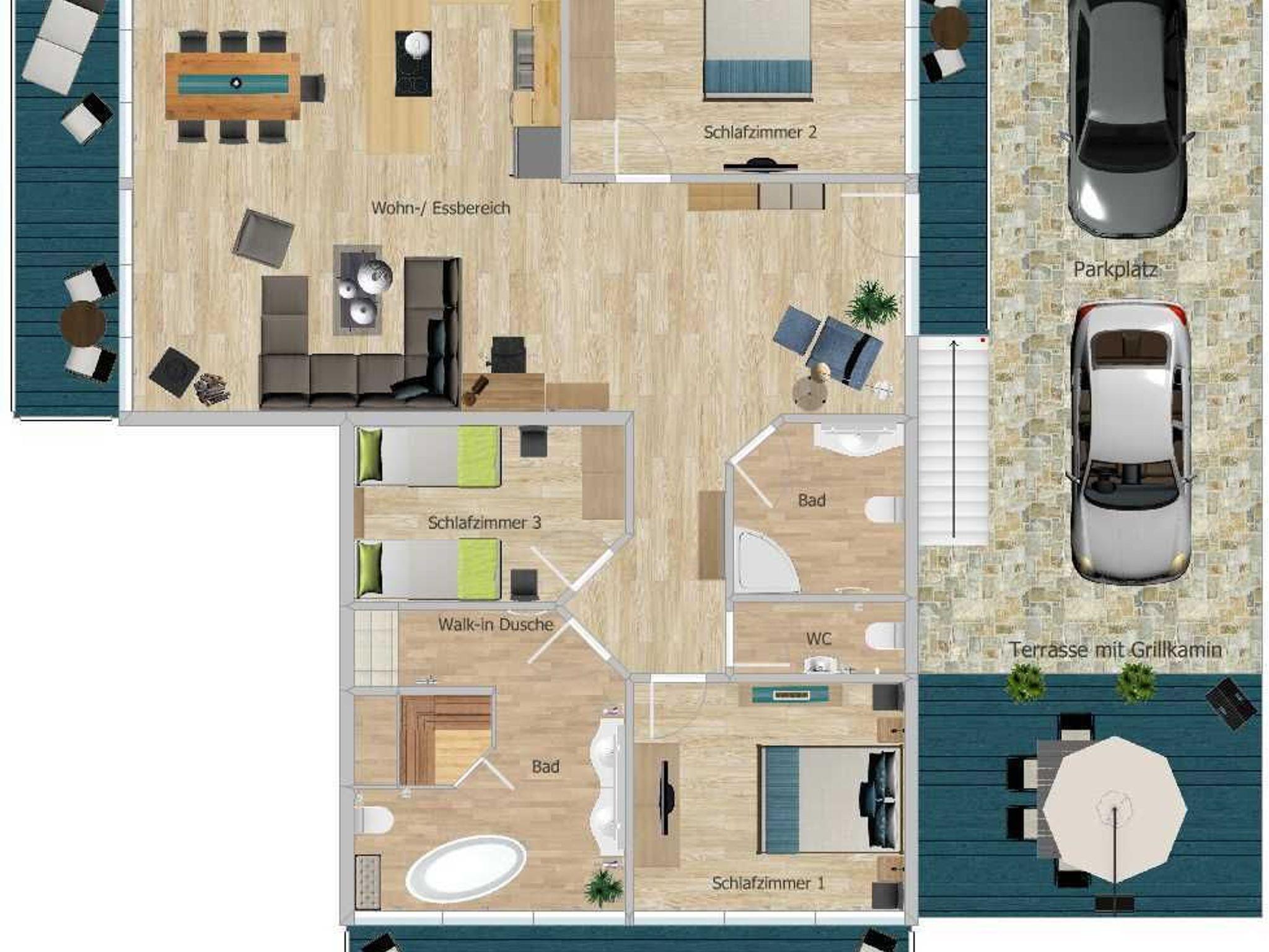 • alle Wohn- und Schlafzimmer mit großem 55 Zoll TV