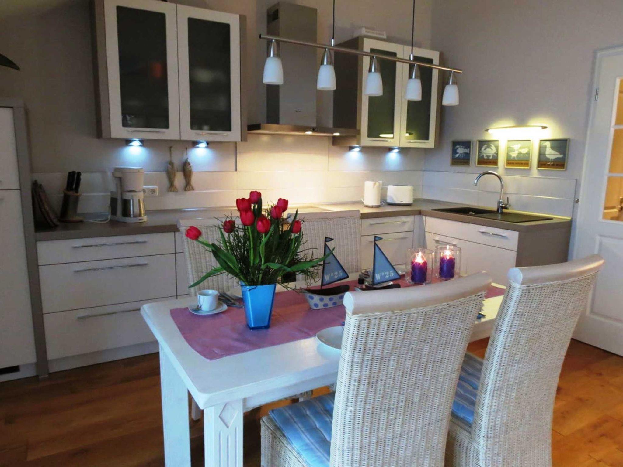 Unsere Ferienwohnung Sturmmöwe befindet sich im 2. Obergeschoss mit großem Balkon. Sie ist für 4 Personen + Kleinkind exklusiv eingerichtet und verfügt neben dem großzügigen Wohn/ Essbereich mit komplett ausgestatteter Küche, über zwei Schlafzimmer, ein Tageslichtbad sowie einen Flur. Hohe helle Räume und hochwertige Landhausdielen tragen zum Wohlbefinden bei. Für unsere kleinen Gäste stellen wir Ihnen ein Kinderreisebett und einen Hochstuhl kostenfrei zur Verfügung.