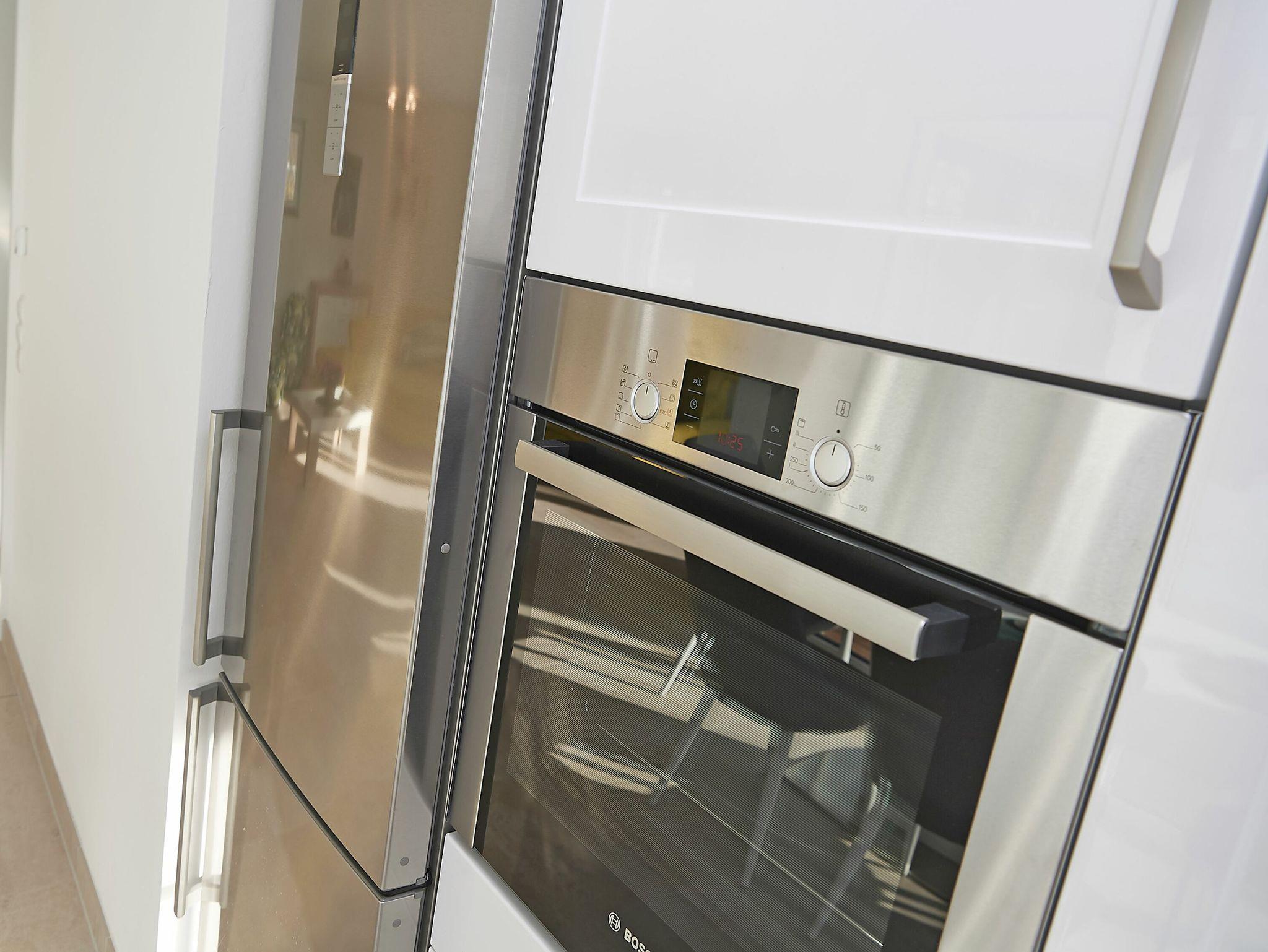Die harmonisch in den Raum integrierte Küchenzeile verfügt u.a. über ein Ceran-Kochfeld, einen Kühlschrank mit Gefrierfach, einen hochgebauten Backofen, eine Geschirrspülmaschine und diverses Kleininventar. Vom Küchen- wie auch vom Wohnbereich aus gelangen Sie auf die ca. 13m² große Terrasse, auf der Sie die Nachmittags- und Abendsonne zu Gast haben.