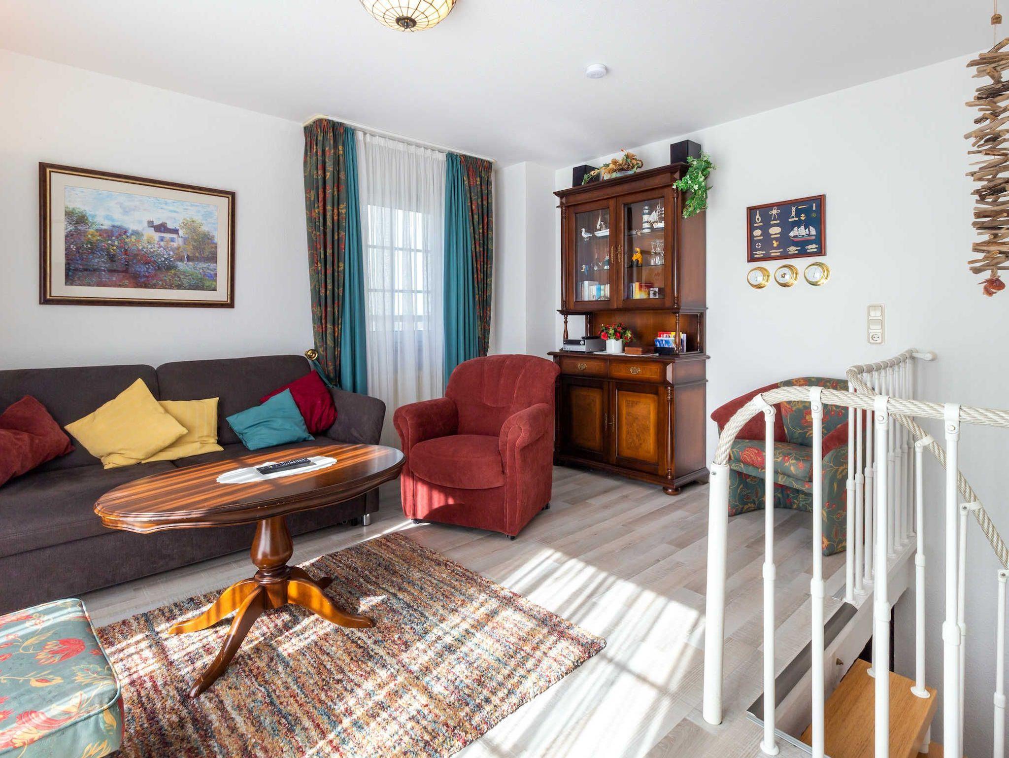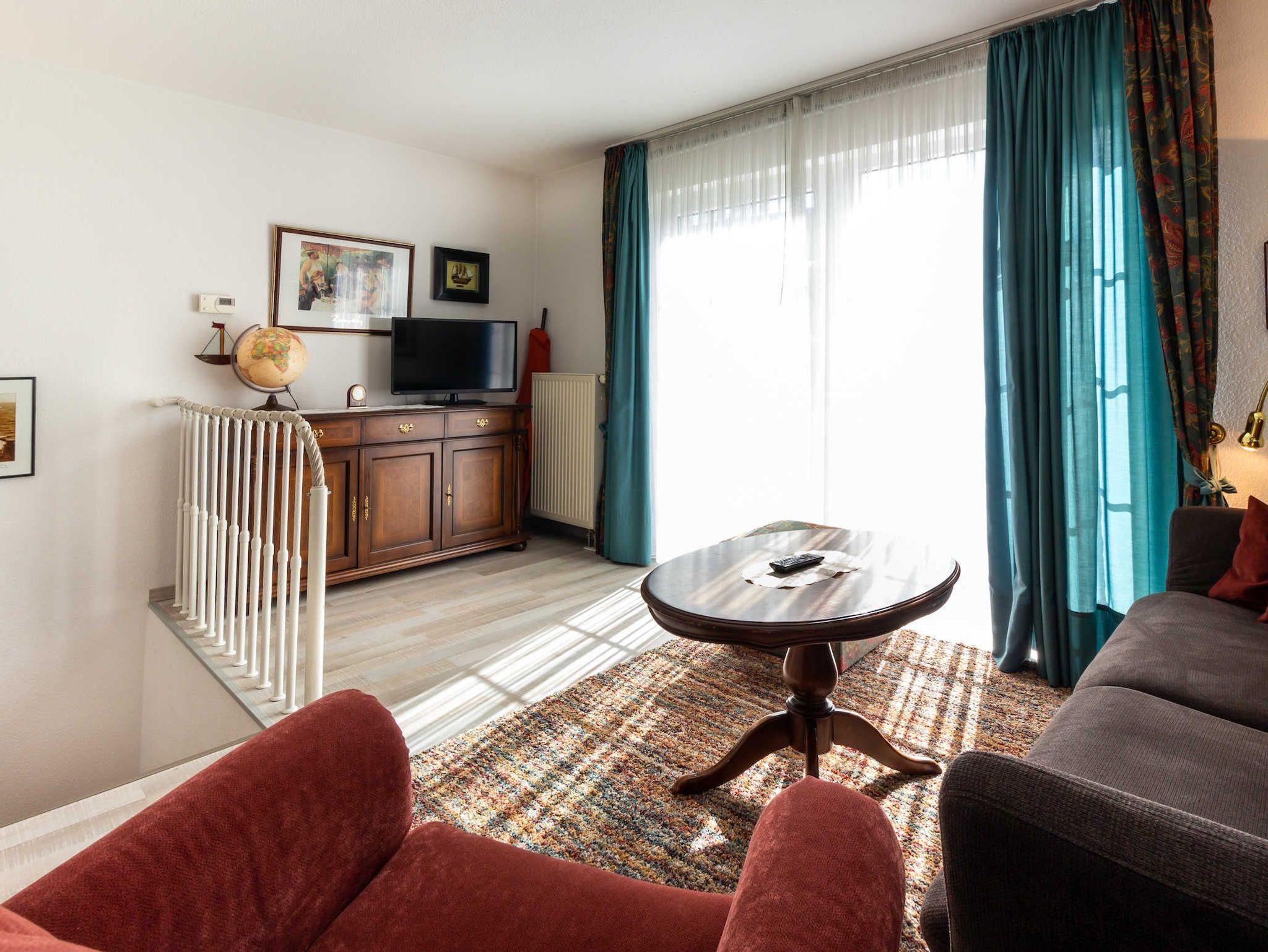 Die Wohnung ist u. a. mit einem LED-Flachbild-TV mit Kabelanschluss, Stereoanlage, Mikrowelle, Elektroherd mit Backofen, Kaffeemaschine, Kinderreisebett und Kinderstuhl ausgestattet. Das Wohnzimmer ist im nostalgischen „Kapitäns-Look“ eingerichtet. Das Appartement geht über 2 Etagen (ca. 50 m²) und ist für 2-3 Personen ausgelegt.