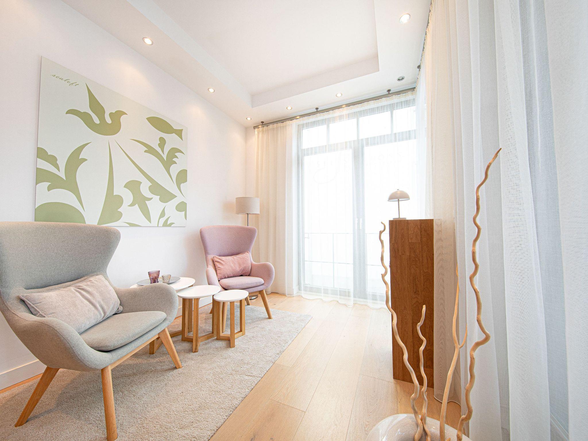 Hier bekommt der Name MeerZEIT nochmal eine ganz andere Bedeutung, lassen Sie sich verzaubern von dem seitlichen Meerblick und genießen Sie den Sonnenuntergang bei einem guten Glas Wein auf Ihrem Balkon. Die Ferienwohnung besticht durch Ihre floralen Akzente und gibt Ihnen ein sommerliches Gefühl. In den kalten Wintermonaten sorgt ein Holzkaminofen im Wohnzimmer für wohlige Wärme und lädt zum verweilen ein.