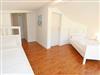 Herzlich willkommen in der 3-Zimmer-Ferienwohnung mit ca.102qm welche Ihnen Platz für max. 4 Erwachsene + 1 Kleinkind bis 3 Jahre im Kinderreisebett bietet. Die Nichtraucherwohnung wurde geschmackvoll und harmonisch im Beachhouse-Stil ausgestattet, so dass Sie hier einen entspannten und komfortablen Urlaub verbringen können. Schon morgens können Sie Ihr Frühstück auf dem großen überdachten und möblierten Balkon mit Strandkorb einnehmen und dabei den herrlichen Blick von der 3. Etage auf den Selliner See genießen. Der Wohnbereich bietet Ihnen eine gemütliche, hellgraue Couchecke mit Couchtisch, Leselampe und einen bequemen Lesesessel, welcher einfach zum Faulenzen einlädt! Ein weißes Sideboard, eine Glasvitrine im maritimen Stil sowie ein großer Esstisch runden zusammen mit einer Mini-Stereo-Anlage, einem Flachbild-TV, DAB-Radio, einen Blu-Ray-Player und einen inklusiven Internetzugang (WLAN) den Wohnbereich ab. Die helle und separate Einbauküche ist selbstverständlich mit einem Geschirrspüler, Backofen, 4 Zonen-Induktionsfeld, Abzugshaube, Kühlschrank mit Gefrierschrank, Mikrowelle, Wasserkocher, Toaster, Kaffeemaschine und diversen Kochutensilien ausgestattet. Neben dem 38 m² großen Wohn- und Esszimmer gibt es noch zwei Schlafzimmer. Ein Schlafzimmer ist mit einem Doppelbett (1,80m x 2,00m), 2 Beistelltischen und einem begehbaren Kleiderschrank ausgestattet. Das kleinere Schlafzimmer verfügt über 2 Einzelbetten (0,90m x 2,00m), verstellbare Lattenroste, Nachttischablagen und einen begehbaren Kleiderschrank und einen kleinen Tisch. Insektenschutzgitter befinden sich in den Schlafzimmern sowie an der Balkontür. Das moderne Tageslichtbad ist mit einer Dusche, WC, Waschtisch, Fön und einer Badewanne ausgestattet. So können Sie auch mit einem herrlichen Schaumbad den Tag ausklingen lassen. Ein wohnungseigener Abstellraum mit Reinigungsutensilien gehört dazu. Im Keller des Hauses können Sie eine gemeinschaftliche Waschmaschine und einen Trockner gegen Gebühr nutzen. Eine begrenzte Abstellmöglichkeit für Ihre Fahrräder ist am Haus gegeben. Ein überdachter PKW-Stellplatz (Nr.17) steht Ihnen inklusive zur Verfügung. Haustiere sind nicht erlaubt. Die Erstausstattung eines Wäschepaketes (komplette Bettwäsche, 1 Duschhandtuch, 1 kleines Handtuch) können Sie bis 14 Tage vor Anreise gegen einen Aufpreis dazu buchen oder durch eigene ergänzen. Ab 2 gebuchten Paketen erhalten Sie einmalig 1 Geschirrhandtuch und 1 Duschvorleger hinzu.