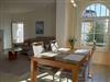 Im großzügig geschnittenen Wohnzimmer lädt die neue, sehr komfortable Sitzgruppe zur Entspannung ein. U.a. sorgt ein Panasonic Heimkino, Audiosystem mit Soundbar der neuesten Generation für Unterhaltungsmöglichkeiten. W-LAN ist kostenfrei verfügbar. Vom eleganten Esstisch für 4 Personen aus haben Sie einen herrlichen Ausblick auf den gegenüberliegenden Friedensberg mit seinem alten Buchenbestand und überblicken gleichzeitig die historische Wilhelmstrasse.