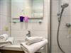 Im hell gefliesten Badezimmer sorgen Dusche/WC, Waschtisch, Fön und ein beheizbarer Handtuchtrockner für Wohlbefinden.