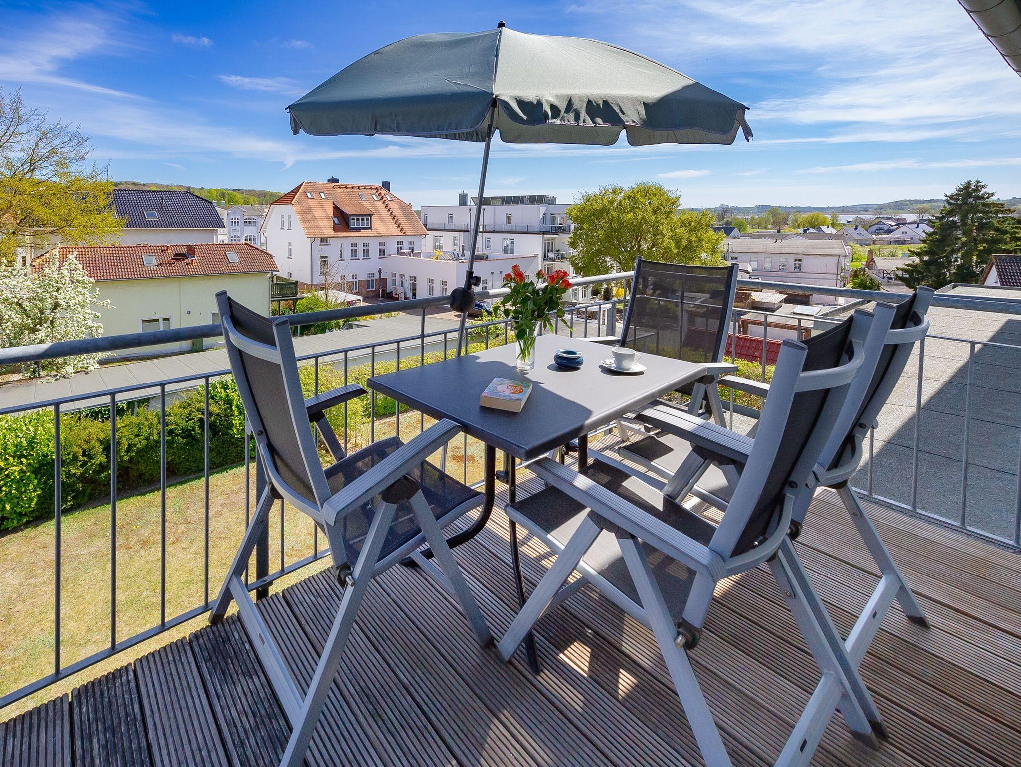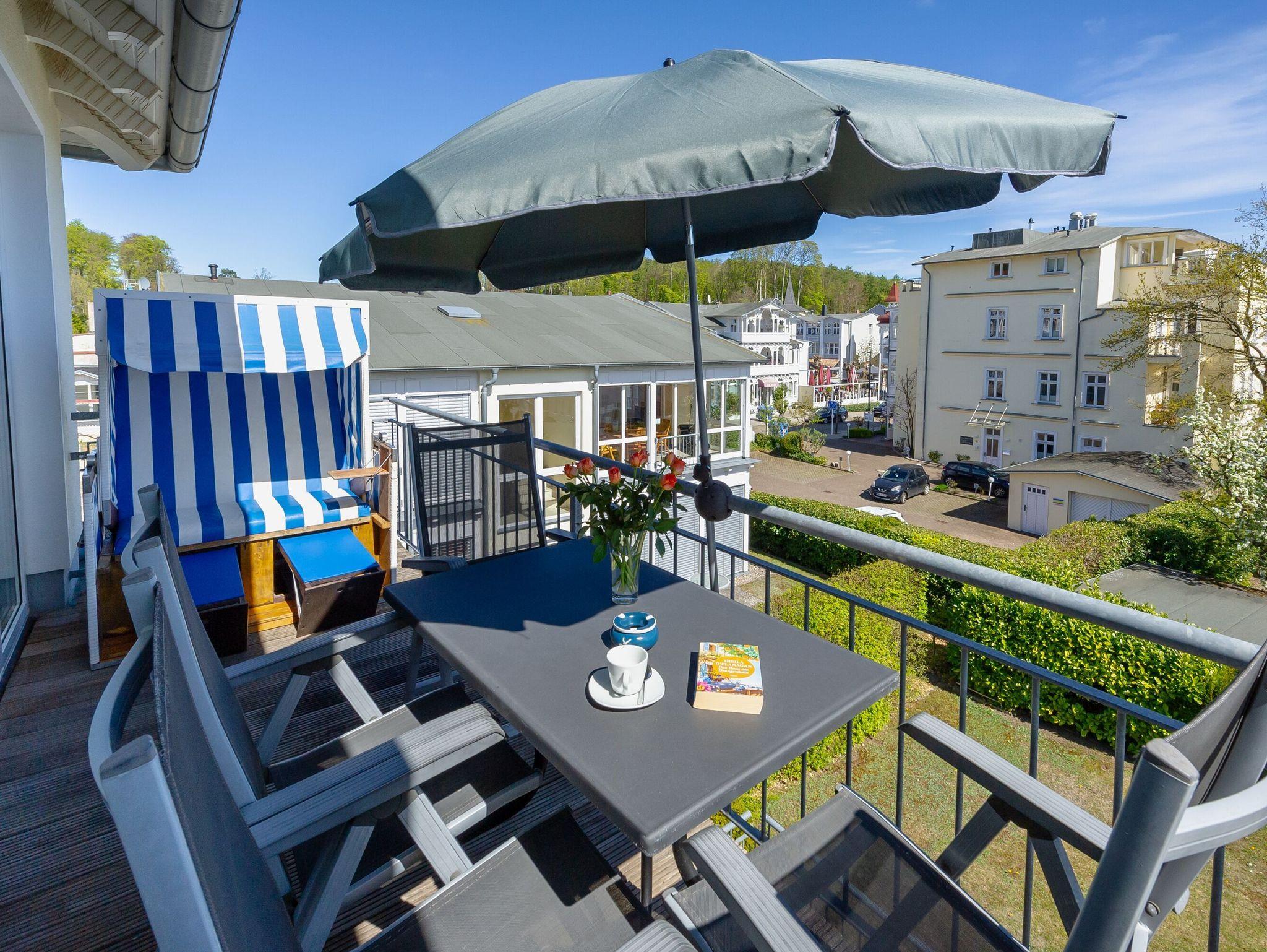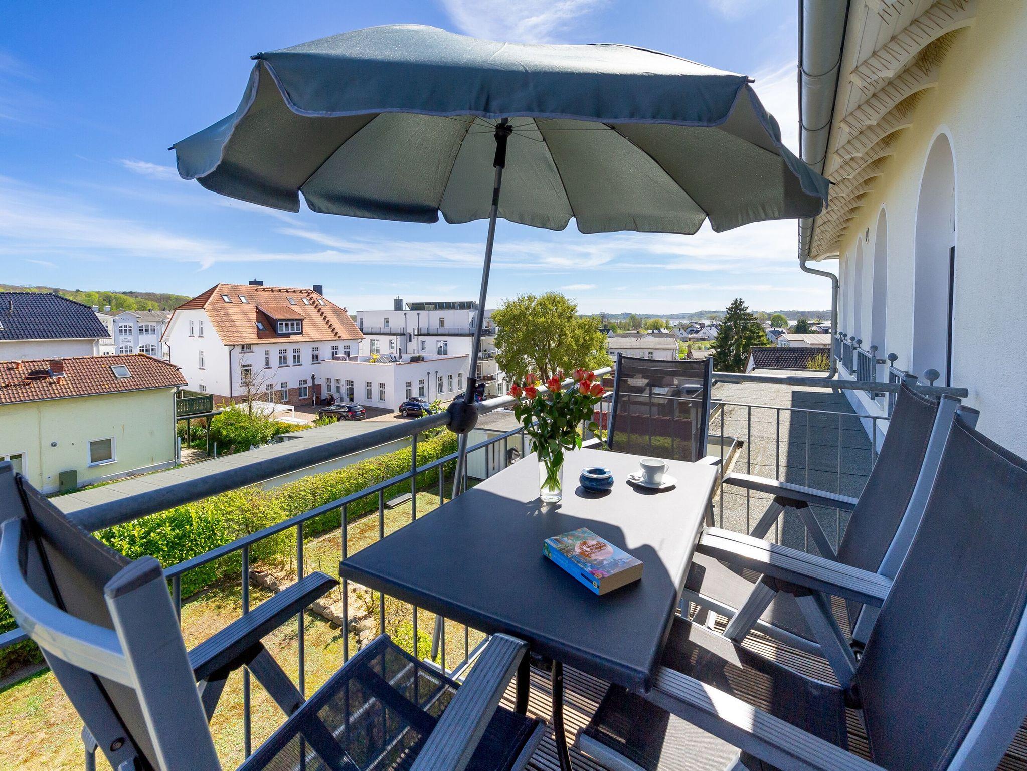 Mit herrlichem Blick über die Dächer von Sellin und bis ins idyllische Hügelland rund um den Selliner See erwartet Sie diese rund 61 qm große Maisonettewohnung im Ober- und Dachgeschoss von Haus 2. Wunderbar ruhig und zentral gelegen, sind es von hier aus über die Wilhelmstraße mit ihren Geschäften und Restaurants nur wenige Gehminuten bis zum Hauptstrand mit der berühmten Seebrücke.