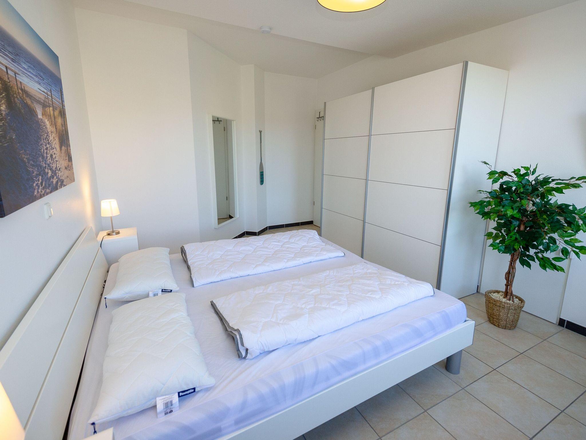 Das Gäste-WC und eines Ihrer beiden Schlafzimmer befinden sich ebenfalls auf dieser Etage. Letzteres ist mit einem komfortablen Doppelbett, einem Kleiderschrank für Ihre Urlaubsgarderobe und einem zusätzlichen Fernsehgerät ausgestattet.