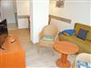 Im Wohnraum stehen eine Sitzgruppe und ein Flachbild-TV zur Verfügung. Hier steht auch ein Esstisch mit Stühlen. Die Sitzgruppe kann für zwei Gäste aufgebettet werden.