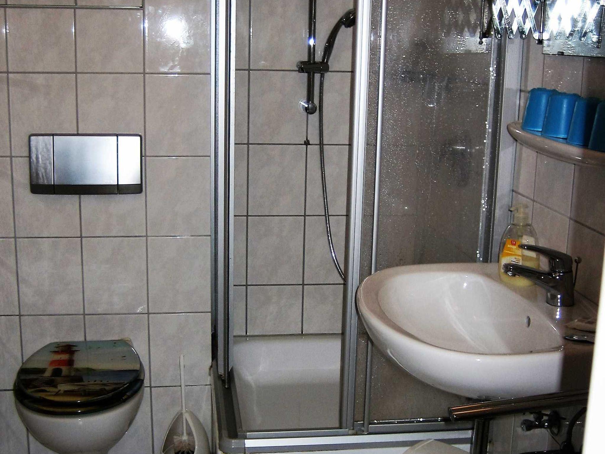 • Bad mit Dusche, Waschtisch und WC