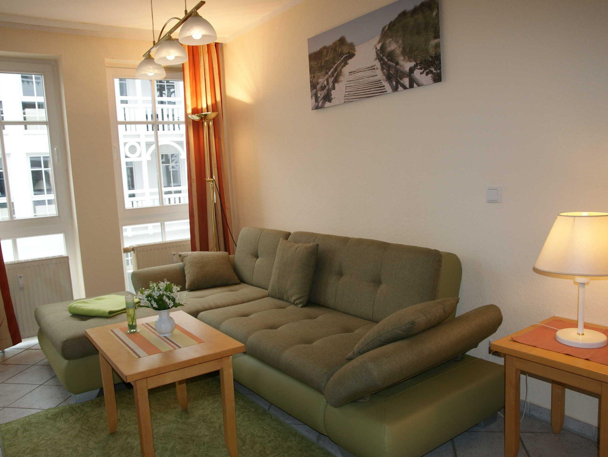 Das helle sonnige Appartementhaus Baabe mit der Nichtraucherwohnung 421 befindet sich zentral in der Anlage Seepark Sellin. Nur 50 m von Ihnen entfernt ist das Erlebnisbad Ahoi zu erreichen, in der Kinder die Wasserspiele mit Außenbecken und Erwachsene die vielfältigen Saunen bei angenehmen Temperaturen genießen können. Ebenfalls auf dem Gelände ist ein Kinderspielplatz und ein 18 Loch Minigolfplatz.In den Ladenpassagen des Seeparks Sellin finden Sie Restaurants, ein Eiscafé, einen Fahrradverleih, eine Drogerie, Souvenirs und vieles mehr. Gegenüber ist der große EDEKA-Neukauf 1400m² mit Bäckerei und Post/Postbank, Lotto. Die Haltestelle des Rasenden Roland, die bekannte Schmalspurbahn der Insel, erreichen Sie in nur vier Gehminuten, so auch die Haltestelle des Rügener Personennahverkehr und natürlich den herrlich breiten Sandstrand. Einen Fahrradverleih, die Minigolfanlage des Ortes und einen Waschsalon befinden sich einen Katzensprung vom Haus entfernt.