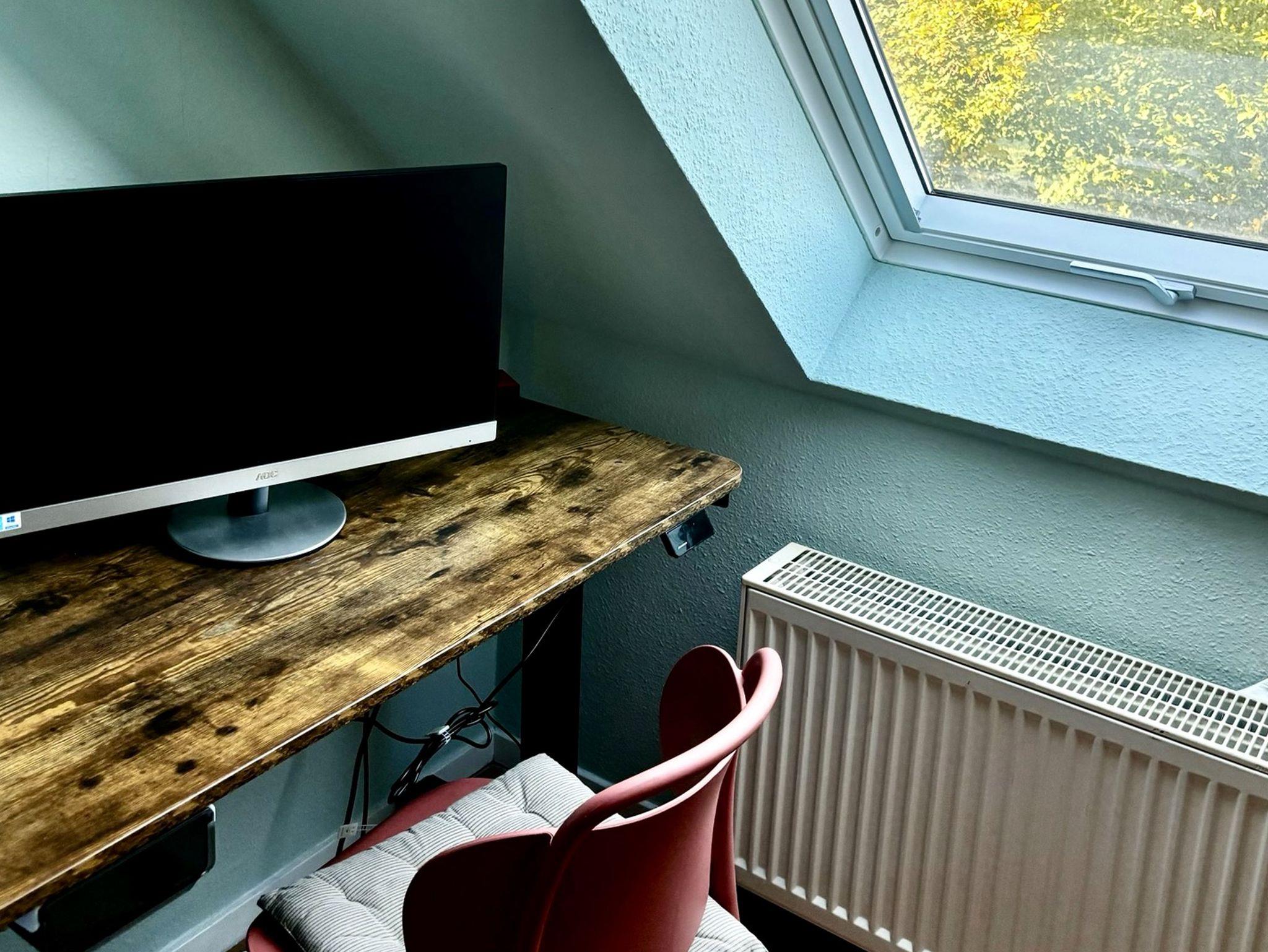 Falls doch einmal Homeoffice ansteht, bietet die Wohnung neben schnellem WLAN auch einem modernen und höhenverstellbaren Schreibtisch, welcher mit Monitor (HDMI-Anschluss) und vielen Steckdosen Workation problemlos möglich.