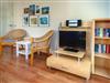Der helle, freundliche Wohnraum ist mit einer bequemen Schlafcouch (Aufbettungsmöglichkeit für 2 Personen), zwei Sesseln, einem Flachbild-TV, einer Mini-Stereoanlage mit CD-Player und einem Esstisch ausgestattet. Internet per W-LAN steht kostenfrei zur Verfügung.