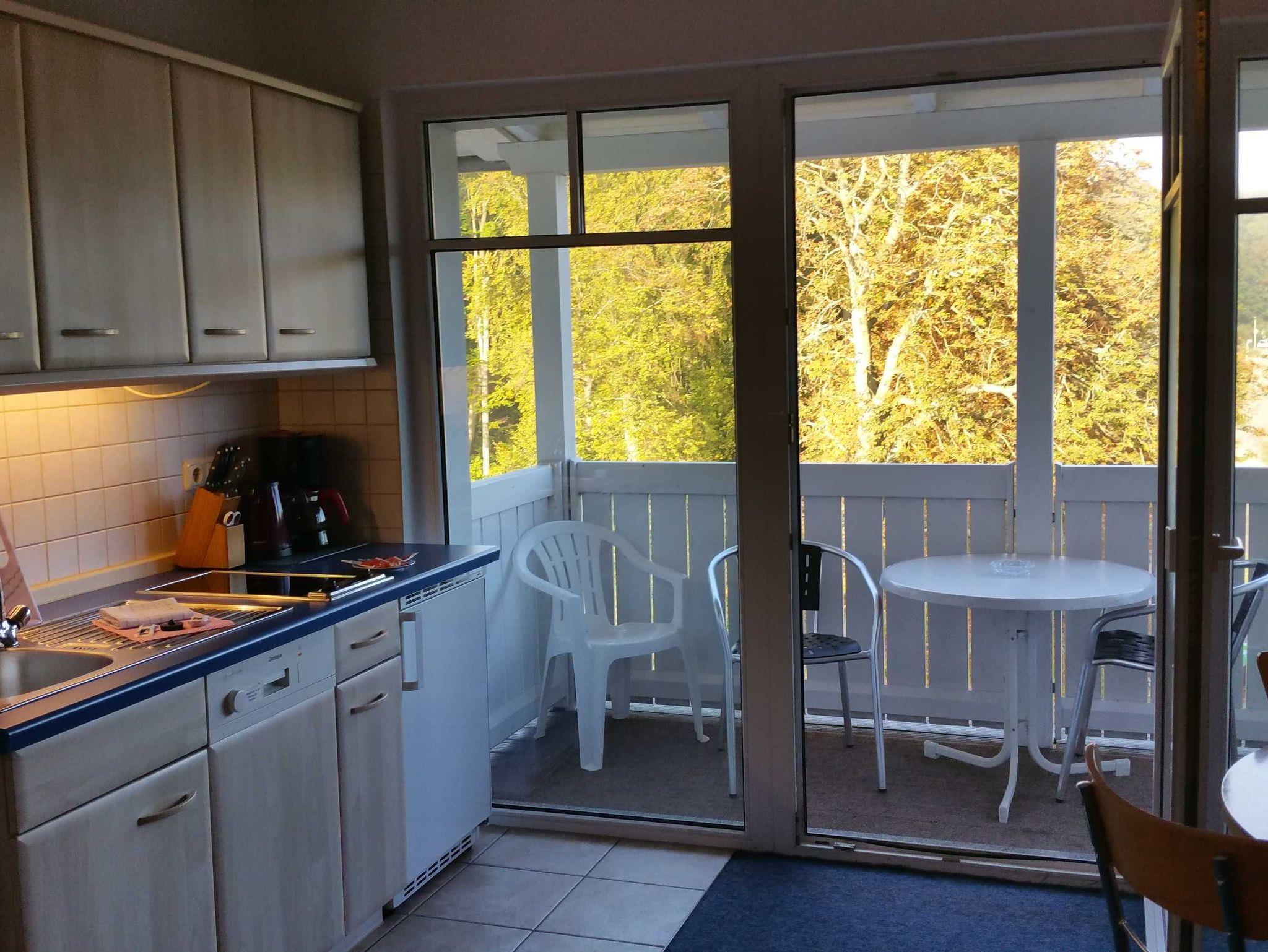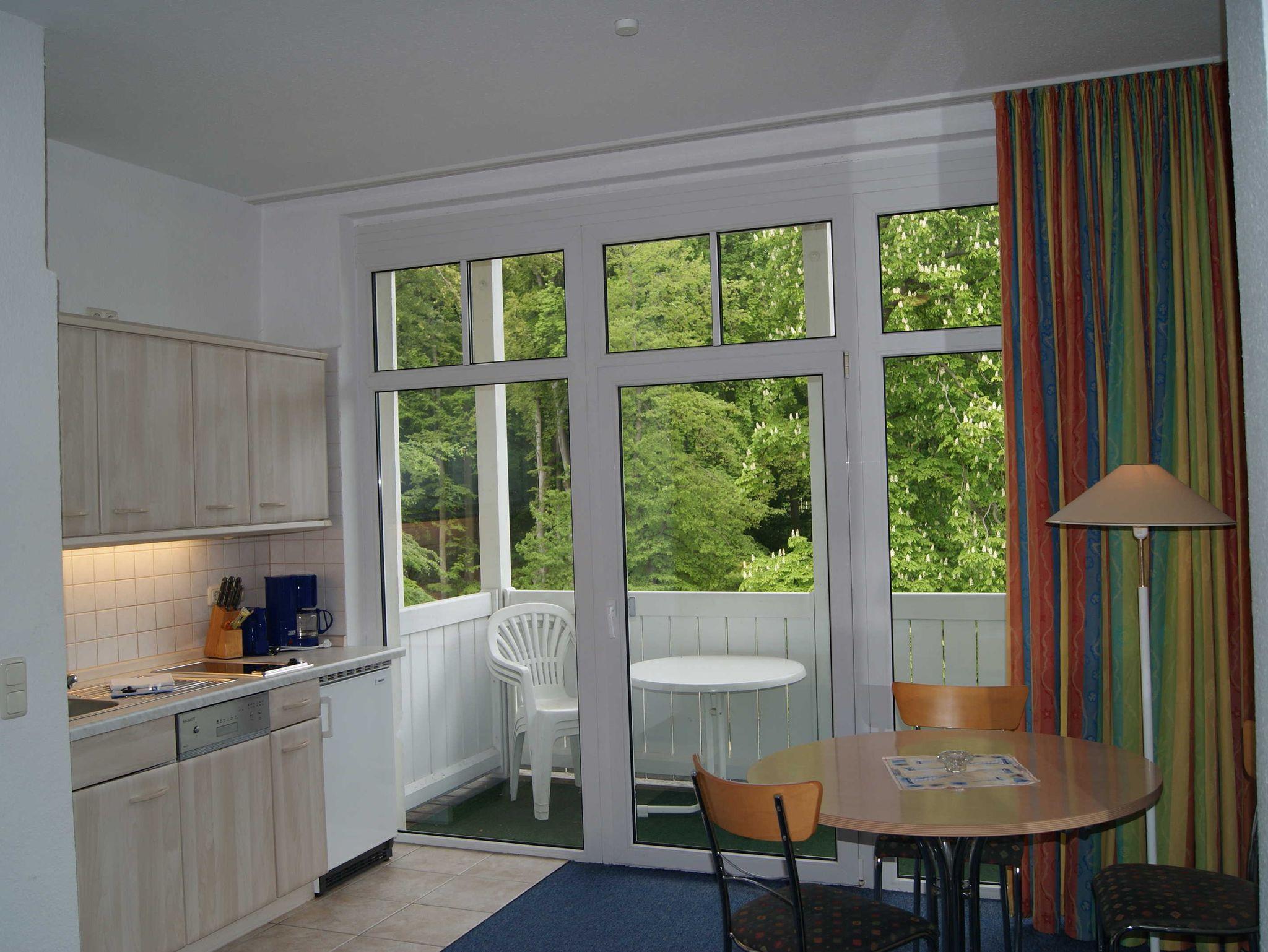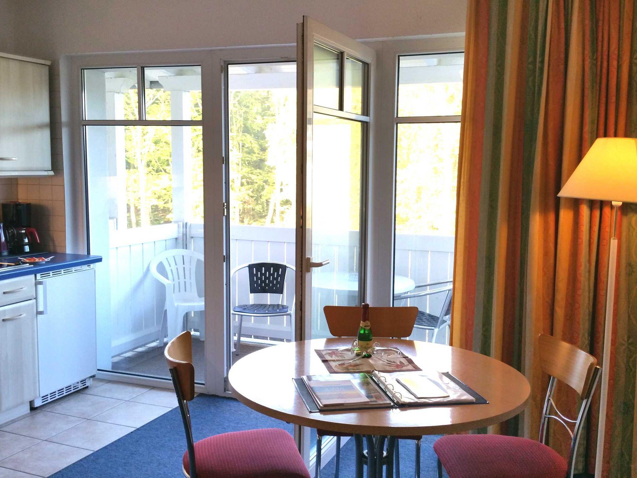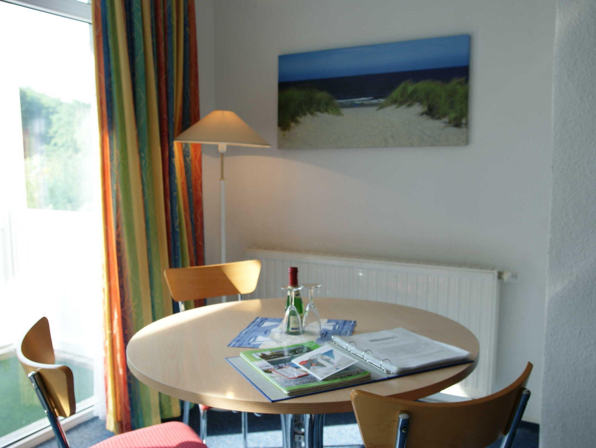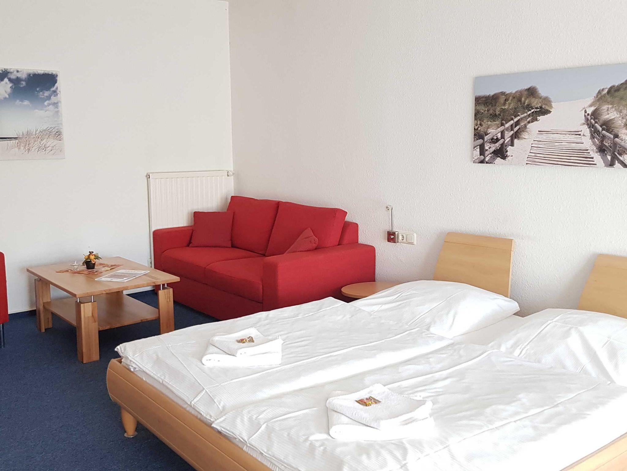 Das 1 Raumappartement hat einen Wohn-Schlafraum mit Doppelbett für 2 Pers.und einer ausziehbaren Couch, Kabel-TV,CD Stereoanlage ,Esstisch, gut ausgestattete Küchenzeile mit Geschirrspüler, Kaffeemaschine, Toaster und Microwelle. Babybett ( ohne Wäsche )und Hochstuhl für die kleinen stellen wir für 10 Euro zur Verfügung ( bitte vorbestellen ) .