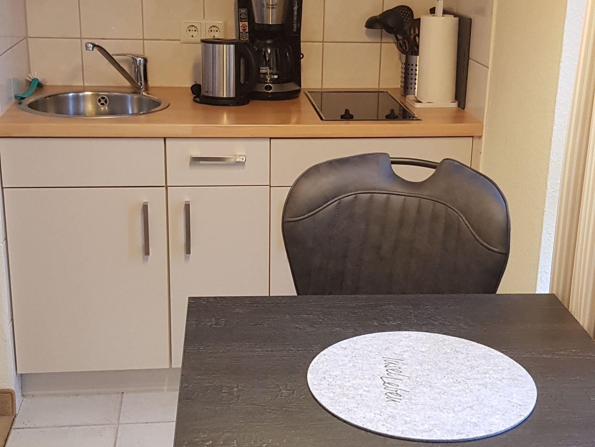 Unser kleine Ferienwohnung verfügt über kostenfreies WLAN. Der kombinierte Wohn-/Schlafbereich mit Verdunklung verfügt über ein Schlafsofa. Darüber hinaus verfügt die Ferienwohnung über ein Bad mit Dusche/WC. Die voll ausgestattete Pantry-Küche mit Kaffeemaschine und Toaster lässt keine Wünsche offen.