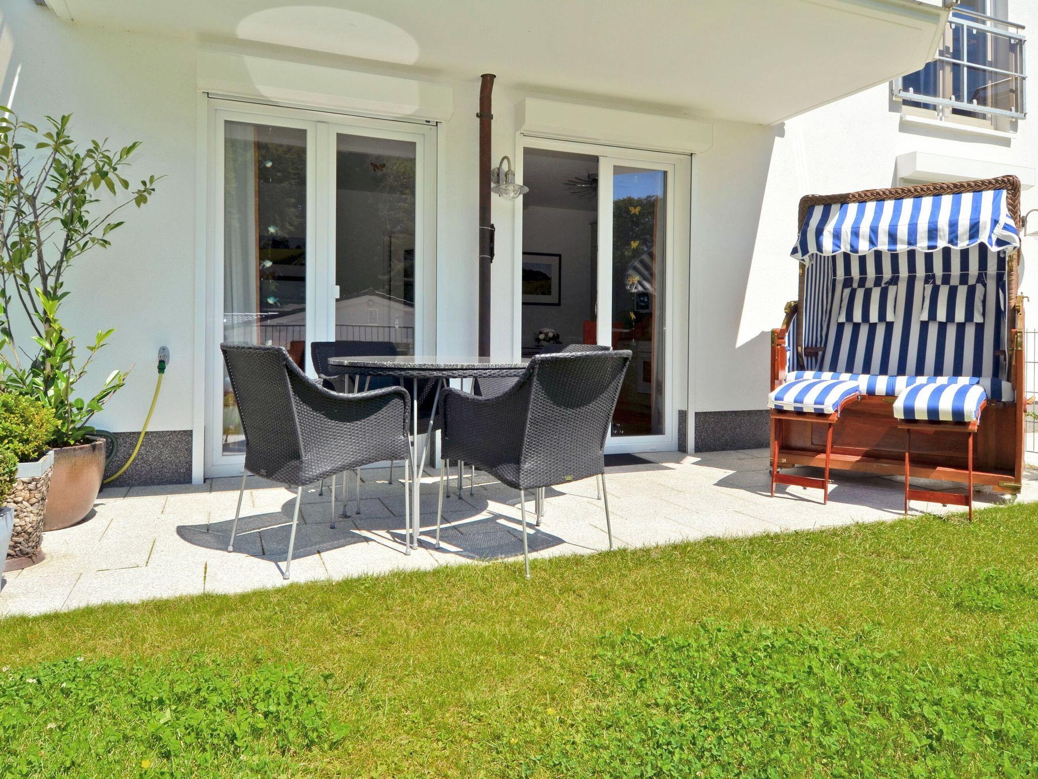 Die Nichtraucherwohnung im Erdgeschoss des Hauses verfügt über eine Wohnfläche von ca. 46 m² und ist komfortabel und geschmackvoll eingerichtet. Auf der rund 8 m² großen Terrasse mit kleinem Garten zur Südseite der Wohnung können Sie die Sonne genießen und finden dort neben bequemen Sitzmöbeln auch einen Strandkorb zum Relaxen.