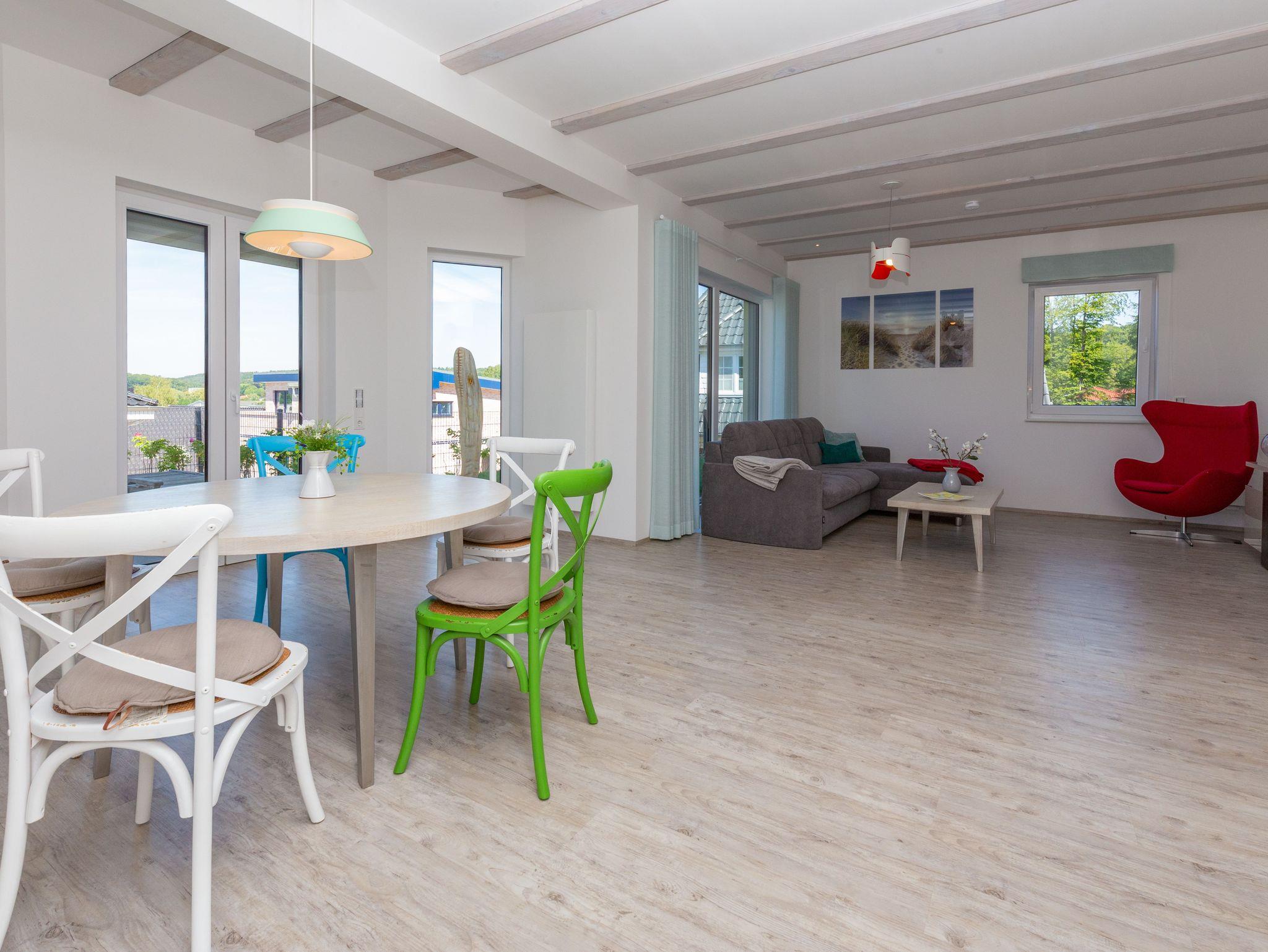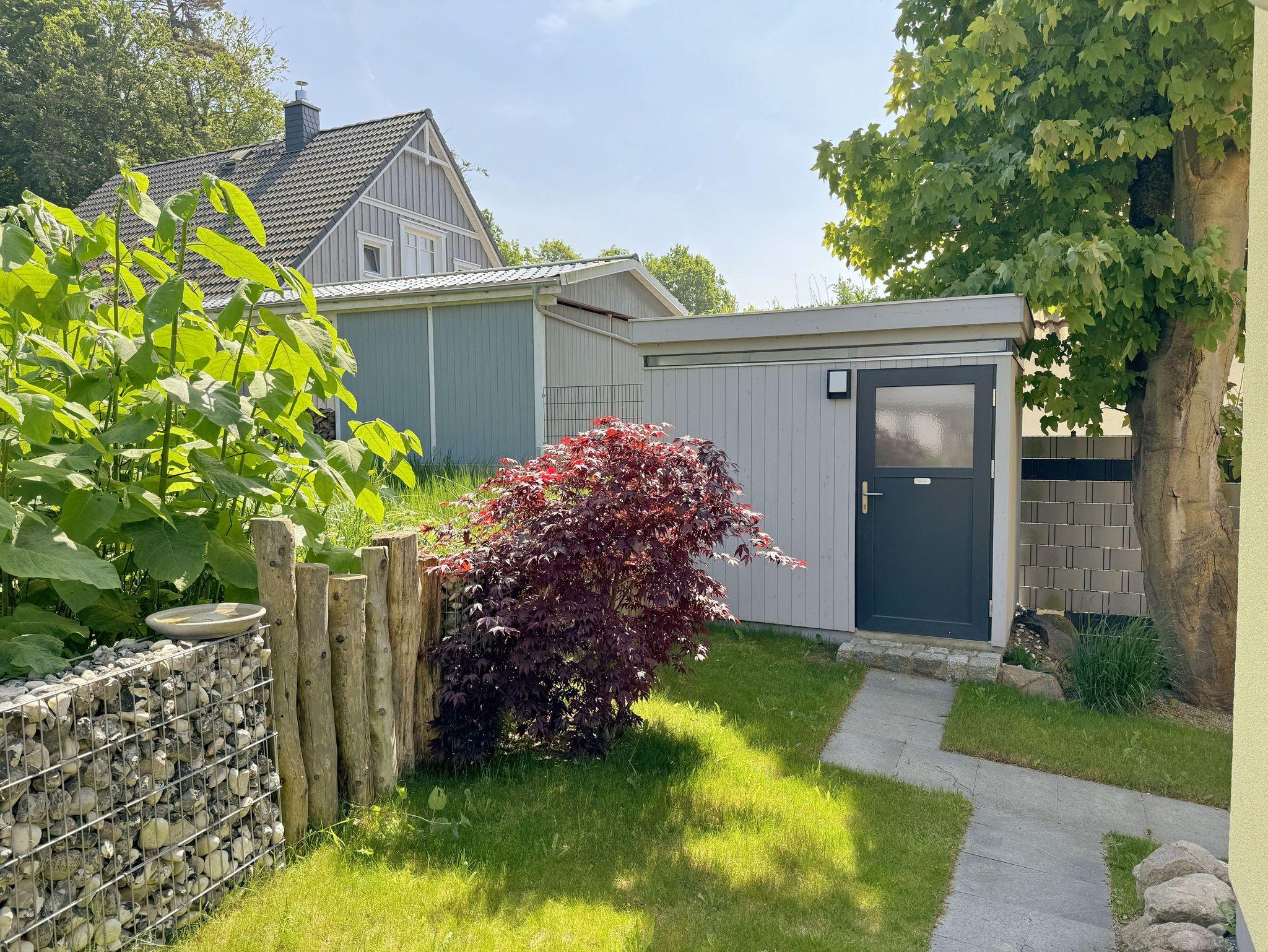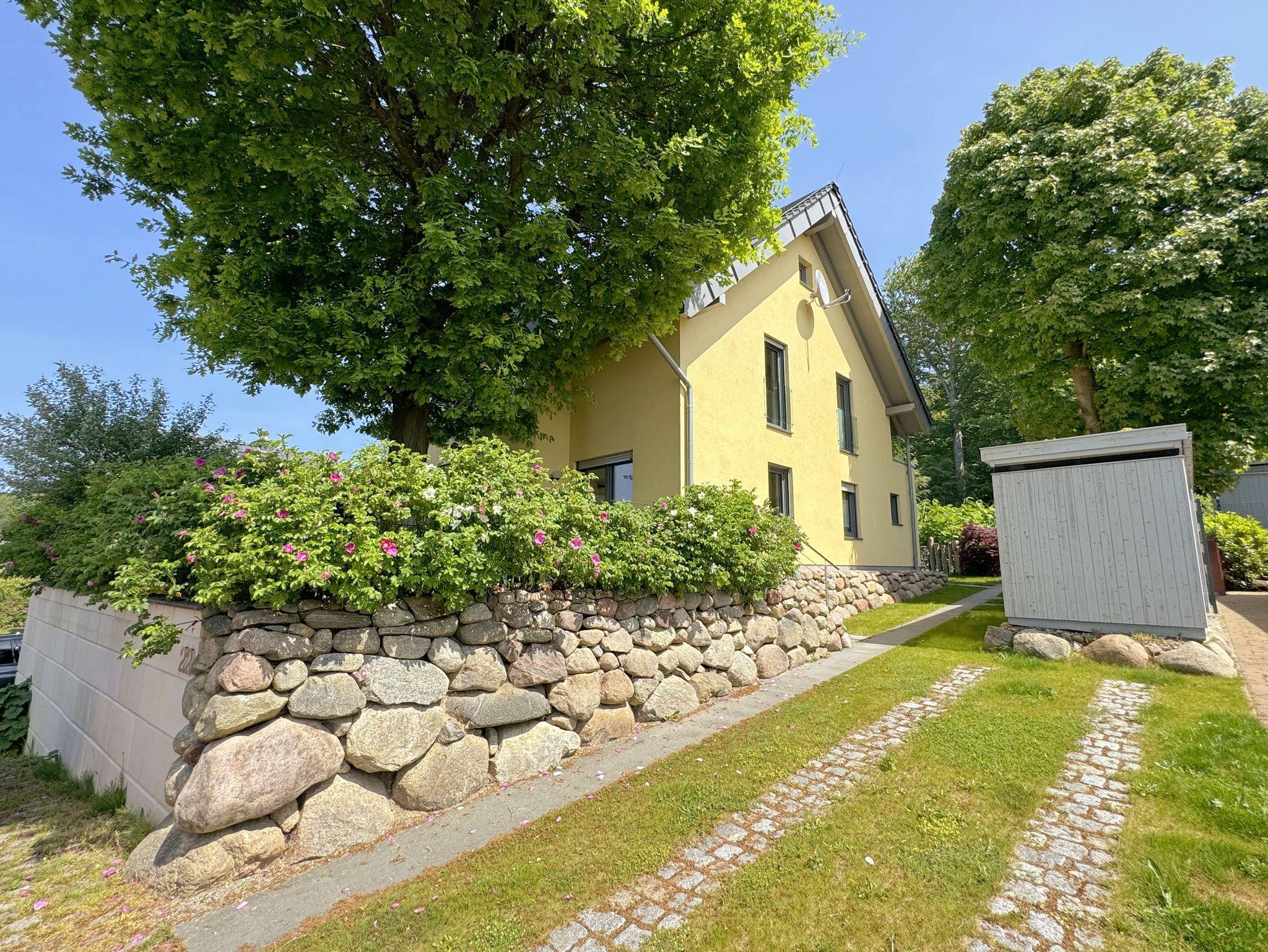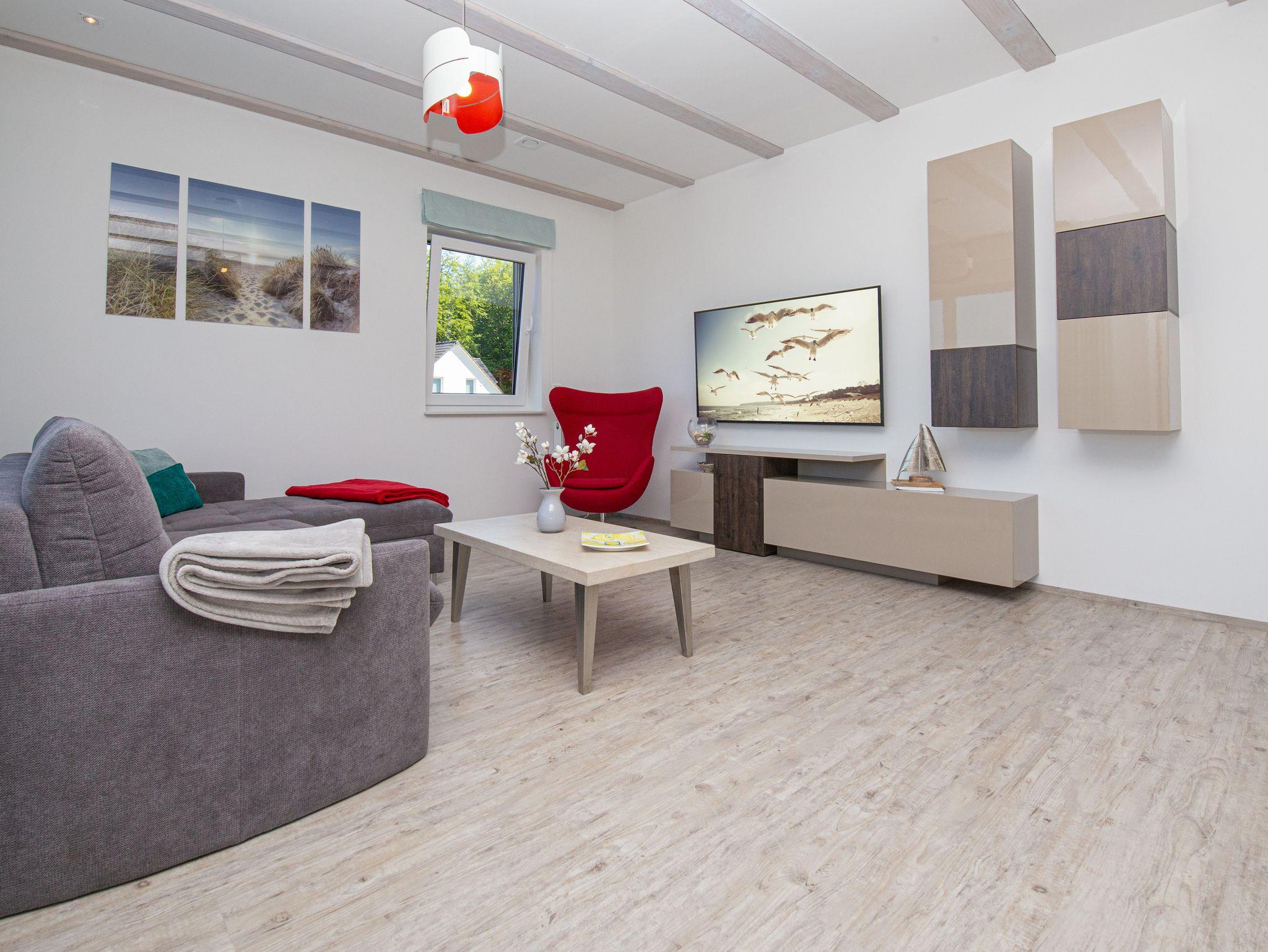 Herzlich Willkommen in der Ferienwohnung Südstrand im Ostseebad Sellin. Die lichtdurchflutete, komfortable Wohnung im Erdgeschoss mit Terrasse, Liegewiese, Kamin und Sauna ist ebenerdig, stufenfrei erreichbar und bietet sämtliche Annehmlichkeiten für Zweisamkeit und Familie. In einer Sackgasse gelegen, ohne Durchgangsverkehr und Fenster mit Dreifachverglasung herrscht angenehme Ruhe und bietet damit Erholung pur. Die Wohnung befindet sich nur ca.300 m vom feinen kilometerlangen Südstrand entfernt und in unmittelbarer Nähe zum Hochuferwanderweg. Ein Bistro mit frischem Fisch, Räucherfisch und anderen auch warmen Gerichten und kalten Getränken erwartet Sie in Strandnähe sowie in der Wilhelmstrasse mit den einzigartigen Villen in Bäderarchitektur. Am Ende der Wilhelmstrasse liegt unterhalb der Steilküste die wunderschöne Seebrücke. Sie erwartet ein atemberaubender Weitblick über den Strand auf die Ostsee. Unsere Bäderbahn fährt alle 20 Minuten, mit Kurkarte kostenfrei, und verbindet den Ort mit dem Badestrand. Im Ostseebad können Sie spannende Reitausflüge, Wanderungen und Sichtungen von Fledermäusen buchen. Der überwiegend aus Buchen bestehende Hochwald lädt zum Wandern oder Touren mit dem Fahrrad ein.