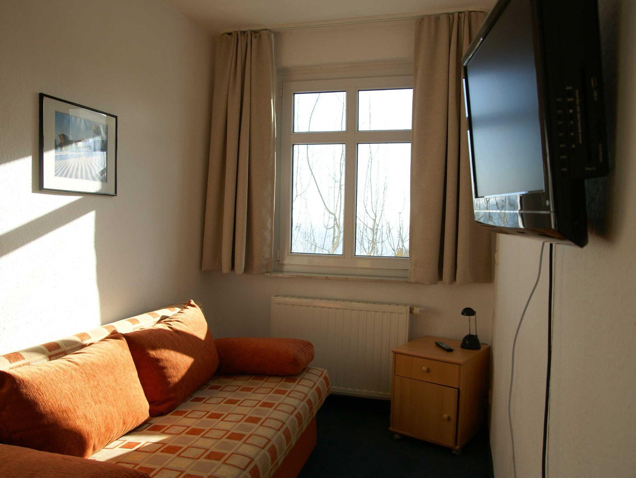 Das 2 Raumapartment in der 4. Etage besteht aus einem Wohnschlafraum mit Doppelbett. Und einem zweiten Zimmer mit Schlafcouch und 2. Fernseher. Möbilierter Balkon auf der Ostseite. Die Küche ist getrennt vom Wohnraum und großzügig ausgestattet. Dusche und WC.Vom Balkon hat man einen schönen Blick auf die Ostsee.