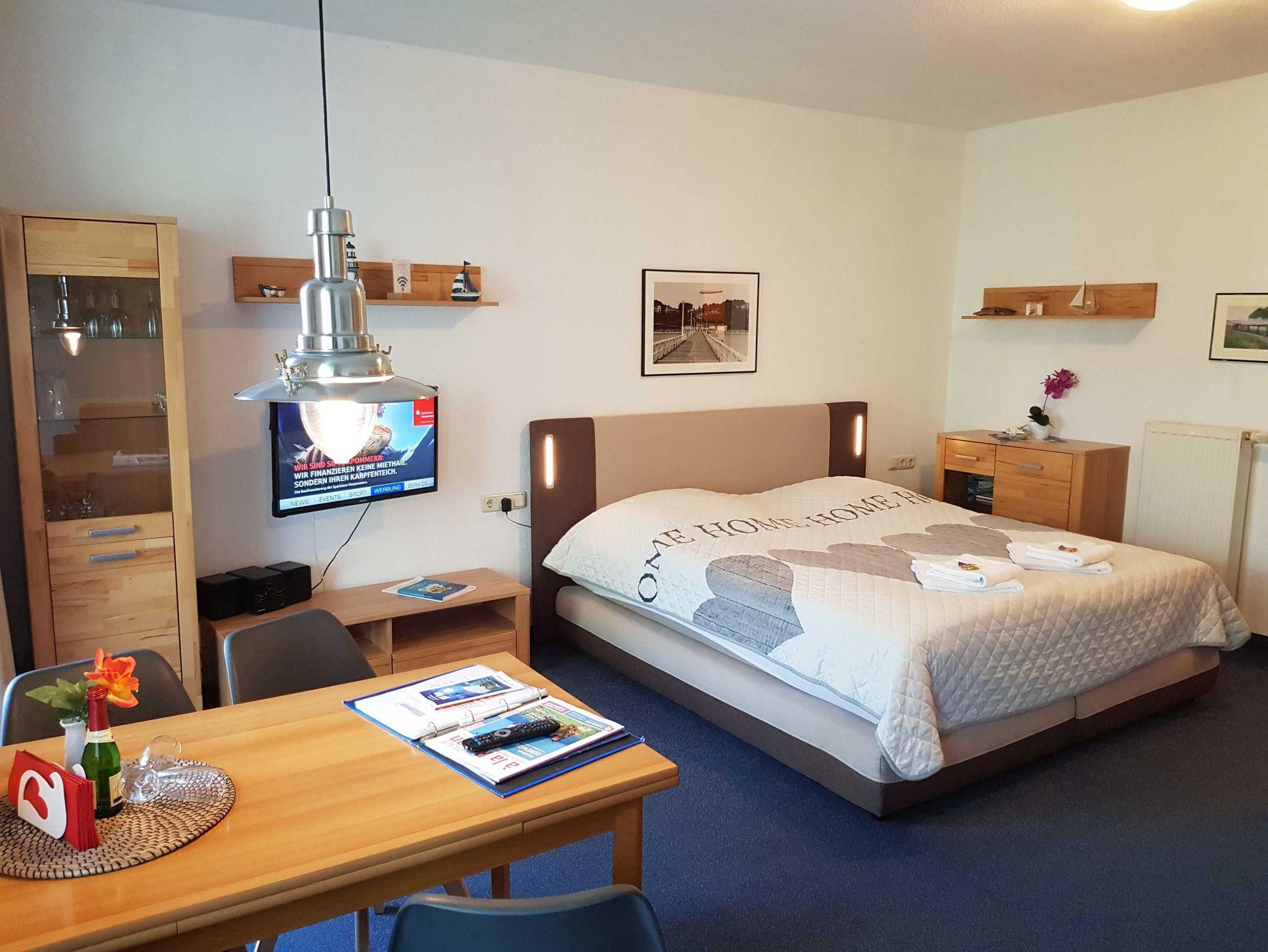 • Wohn-Schlafraum mit Boxspringbett und einem 2. Zimmer mit Schlafcouch
