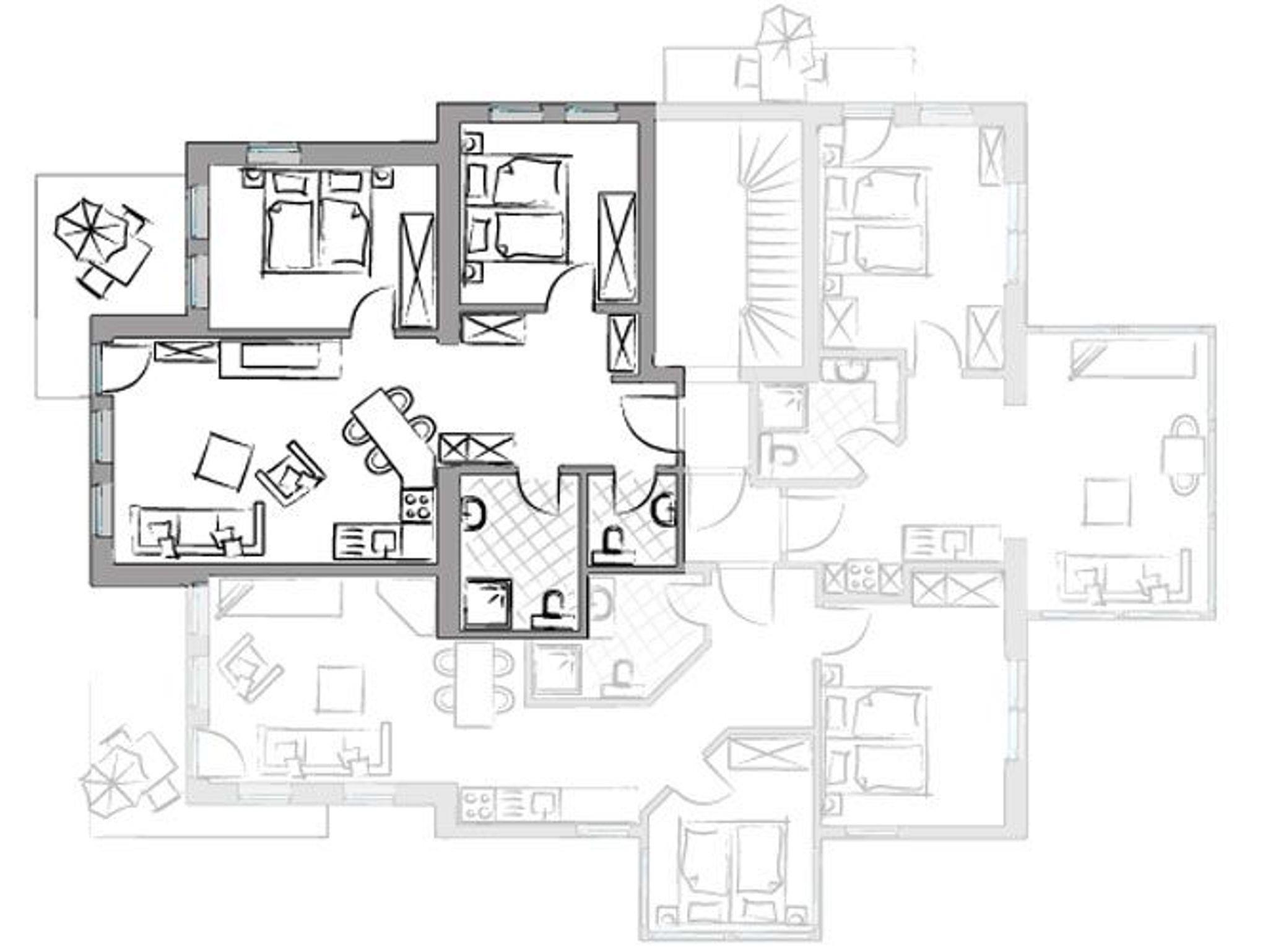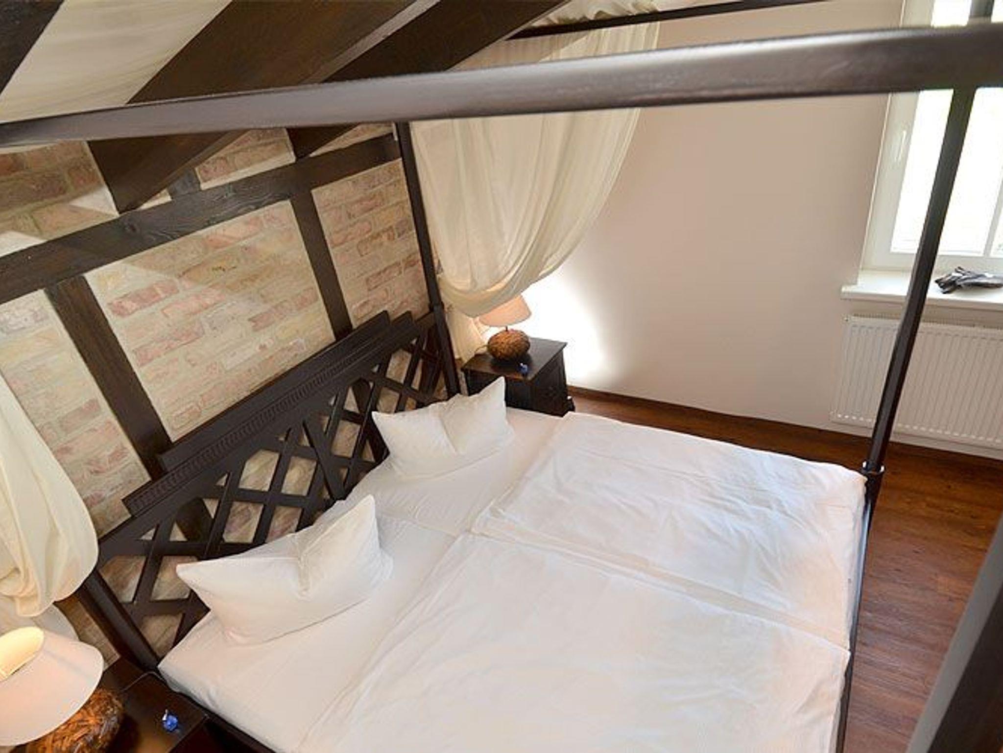 Das Appartement verfügt über zwei separate Schlafzimmer in stilgerechter Einrichtung und Doppelbetten in 1,80 x 2,00 m Größe. In einem der Schlafzimmer wartet ein Himmelbett sowie ein zweiter Fernseher auf Sie. Kinderreisebettchen können nicht in den Schlafzimmern untergebracht werden!