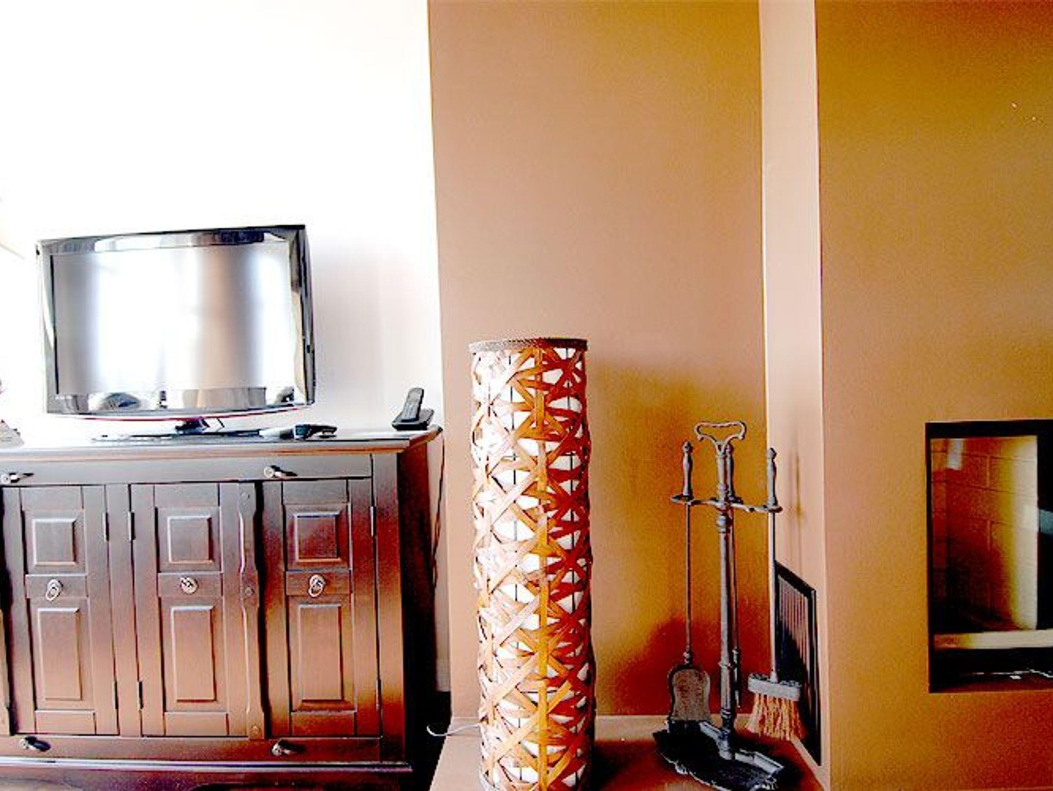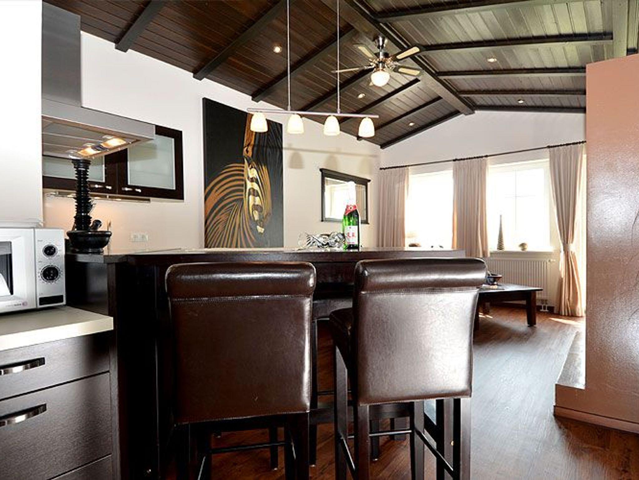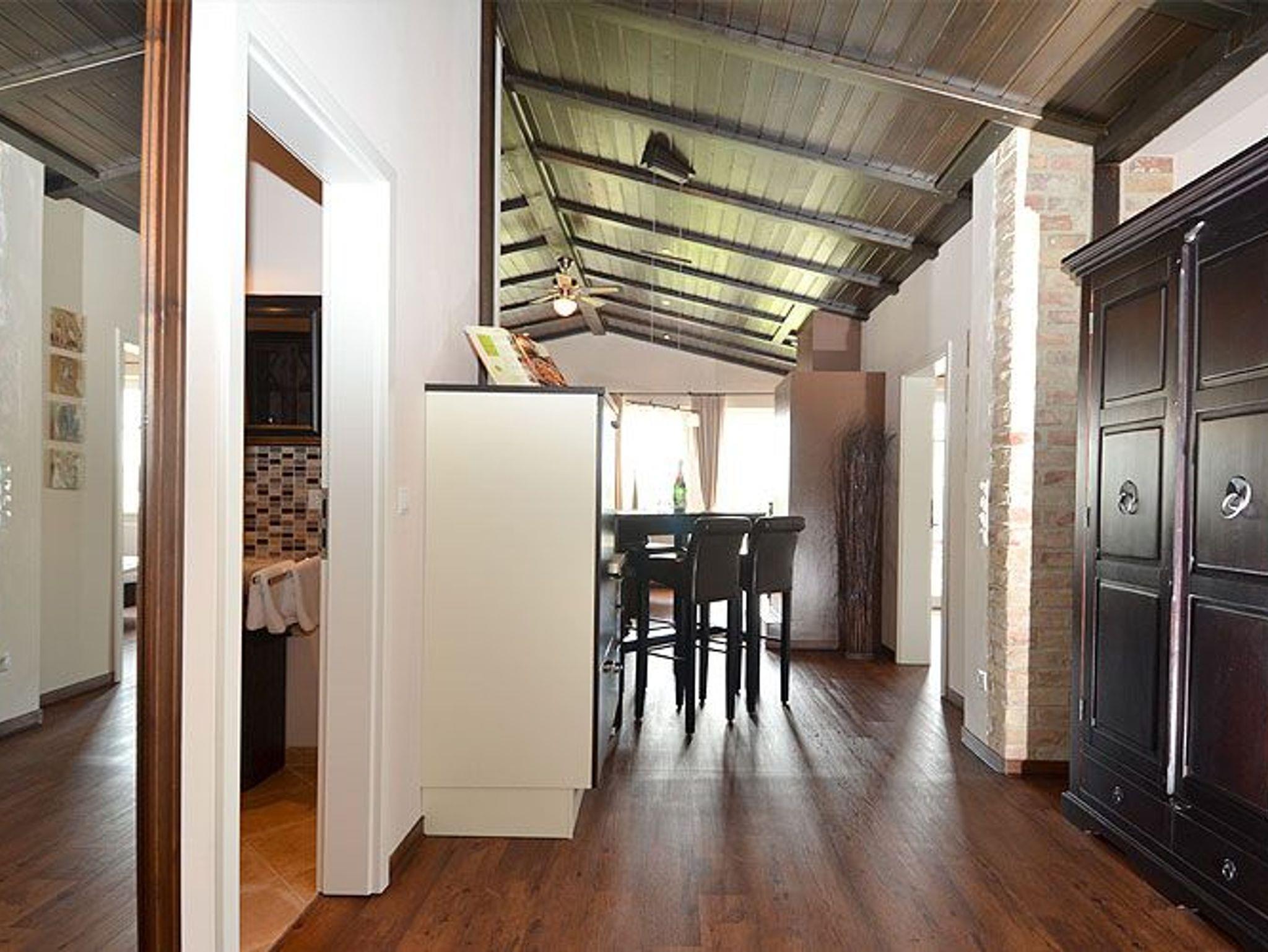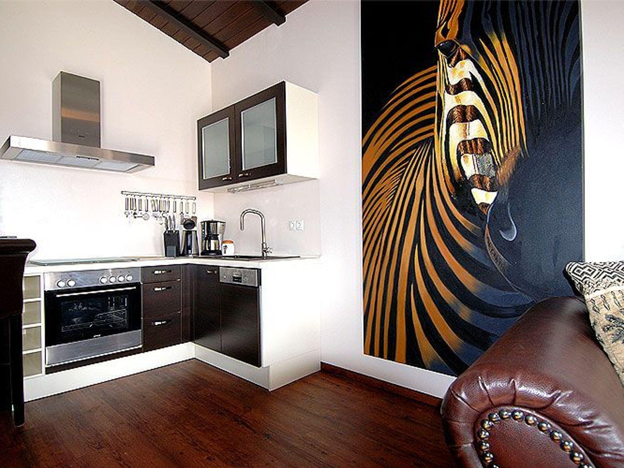 Über einen Flur gelangen Sie in den lichtdurchfluteten, großzügigen Wohn- und Essbereich mit sichtbaren Deckenbalken. Die Fewo ist im Kolonialstil eingerichtet und bietet u.a. einen Kamin für erholsame Stunden, einen LCD-Fernseher, eine BOSE Bluetooth-Soundanlage sowie ein schnurloses Telefon. Ein besonderes Highlight dieser Wohnung ist das Relax-Sofa im Afrikalook, welches zum Entspannen einlädt. Kostenloser Internetzugang (per Datenkabel oder per WLan) steht selbstverständlich ebenfalls zu Ihrer Verfügung.