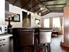 Angrenzend befindet sich die offene Küche mit einem Esstresen. Ein Kühlschrank mit Gefrierfach, ein Backofen, ein 4 Platten- Ceranfeld, eine Spülmaschine sowie eine Mikrowelle, Toaster, Mixer, Eierkocher und diverses Kleininventar lassen keine Wünsche offen. Ein JURA-Kaffeeautomat sorgt für Kaffee satt.