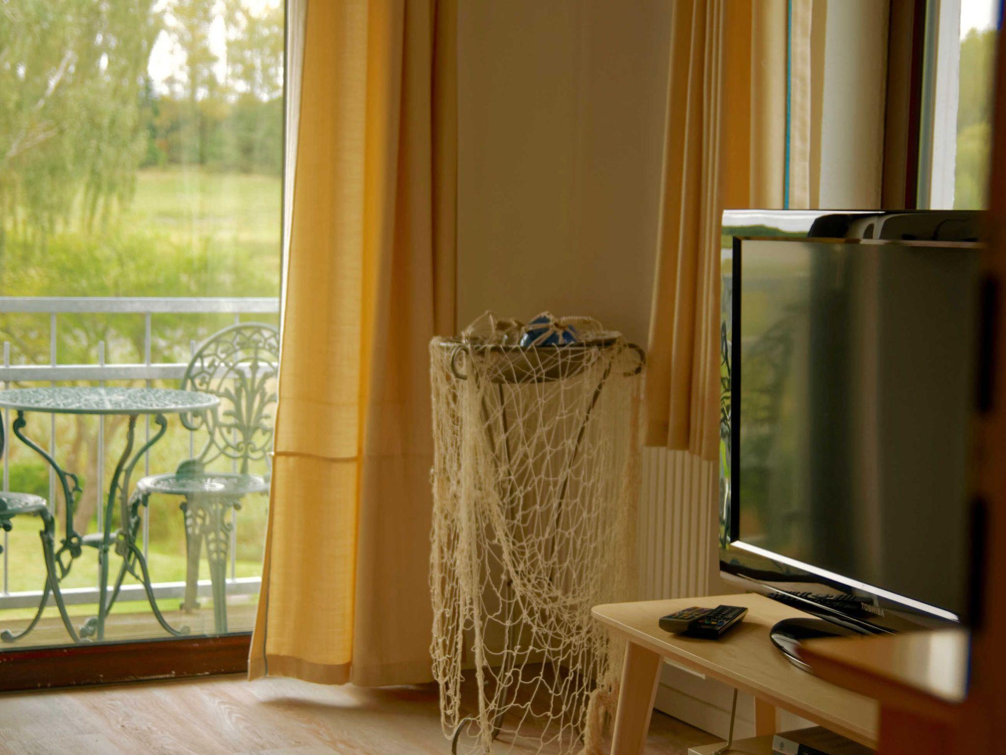 Vom Balkon des Wohnzimmers aus können Sie die Segler beobachten. Es gibt ausserdem zwei Schlafzimmer, ein Wannen-Bad und eine voll eingerichtete Küche mit Elektroherd, Ofen, Geschirrspüler etc.. Die Ferienwohnung ist gut geeignet für den Urlaub mit Kindern, Radtouristen, Angler, Naturliebhaber, Wanderer und Ruhesuchende. Die Wohnung ist durch eine steile Treppe im Eingangsbereich nicht barrierefrei.