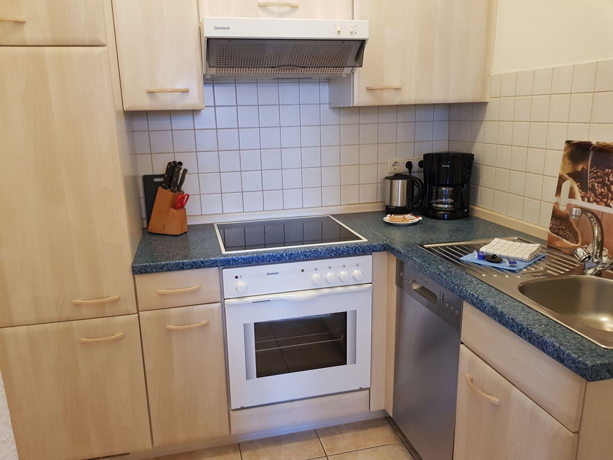 • Küche mit 4 Platten Cerankochfeld, Backofen und Geschirrspüler ,Kaffemaschine, Wasserkocher, Toaster.