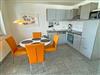 Die in den Wohnraum integrierte, sehr gut ausgestattete Einbauküche verfügt über einen Herd mit Ceranfeld und Backofen, Kühlschrank mit Gefrierfach, Spülmaschine, Mikrowelle, Kaffeemaschine, Toaster, Wasserkocher sowie ausreichend Geschirr und Kochutensilien.