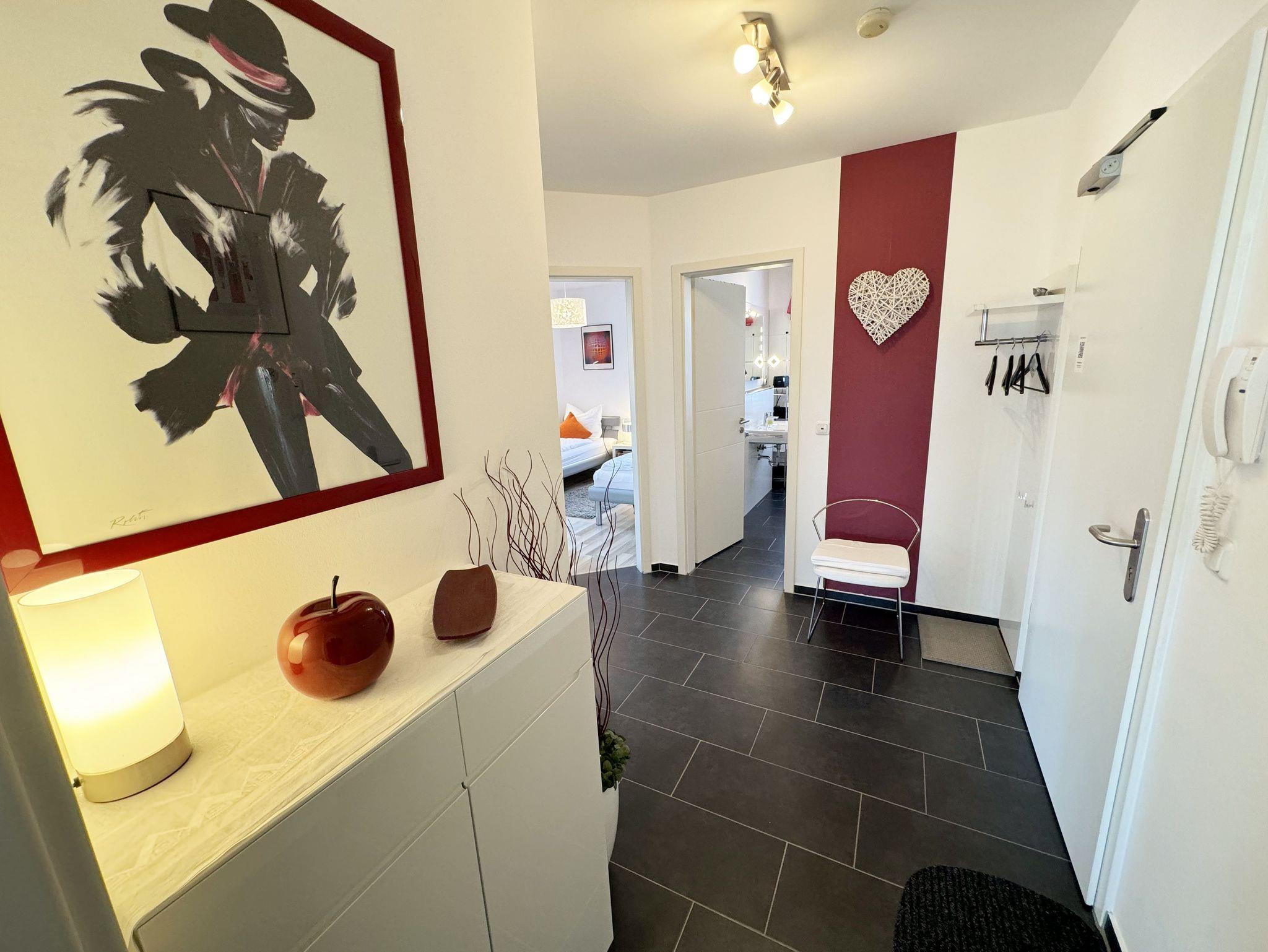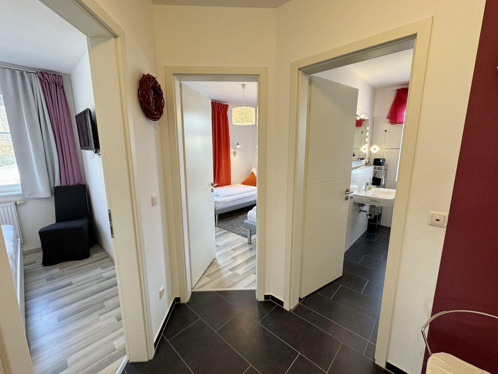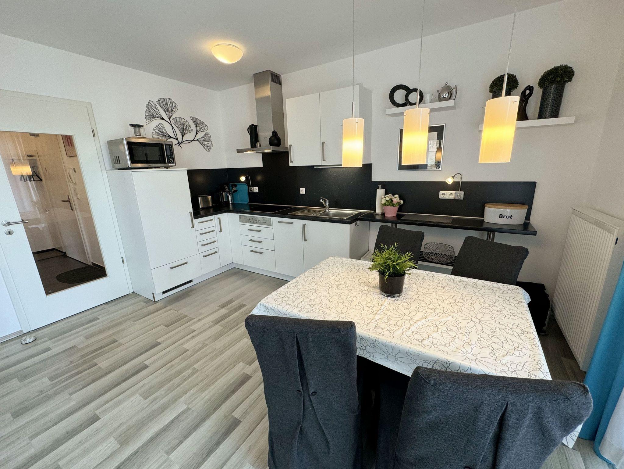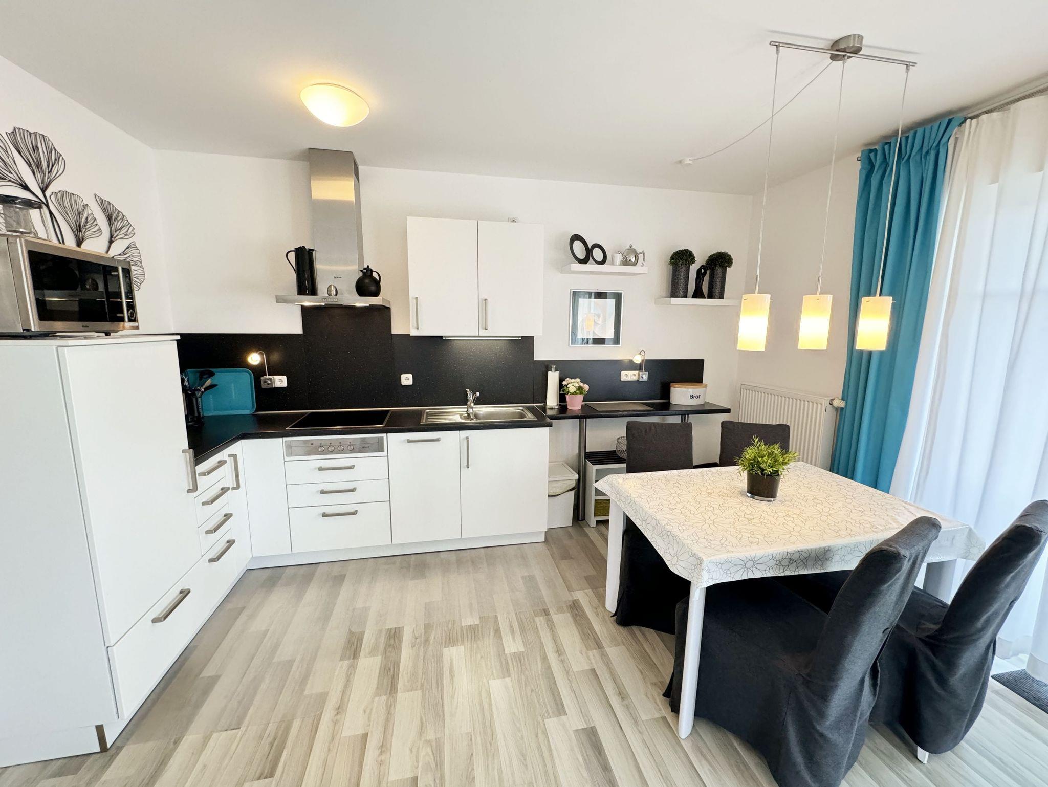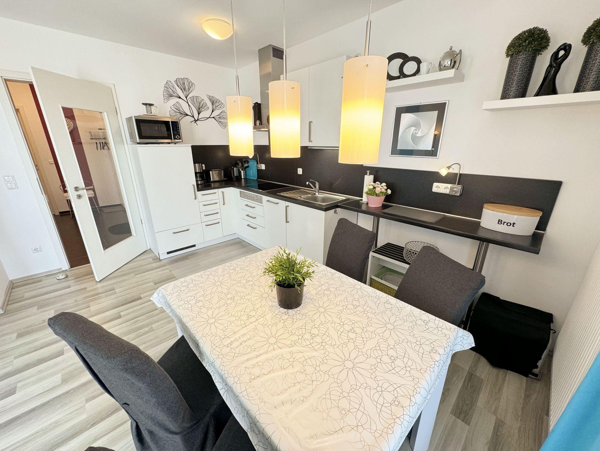 Ihre Nichtraucher-Ferienwohnung ist mit viel Liebe zum Detail ausgestattet und eingerichtet worden. Sie wohnen in einer ca. 66 qm großen 3-Zimmer-Wohnung, die für 2 bis 4 Personen ausgelegt ist. Ein Kleinkind bis 3 Jahre kann ohne Zusatzkosten zusätzlich im Kinderreisebett (ohne Matratze, ohne Bettinlett) und einem Hochstuhl untergebracht werden. Die Wohnung Nr. 4 befindet sich in der 1. Etage. In der Wohnung finden Sie einen kombinierten Wohn-/Koch- und Essbereich. Die integrierte moderne Küchenzeile lässt mit einer Mikrowelle (Kombigerät), einem Ceran-Kochfeld, einem Geschirrspüler, einem Kühlschrank mit Eisfach, ein Mini-Backofen, einer Kaffeemaschine, Toaster, Wasserkocher und anderen praktischen Helfern keine kulinarischen Wünsche offen. Der offene integrierte Wohnbereich ist geschmackvoll mit Ecksofa, Couchtisch, einem kleinen Regal mit Bücherauswahl, Brettspielen und Stehlampe eingerichtet. Abgerundet wird der Wohnbereich mit einer Musikanlage, sowie einem 40-Zoll-LCD-TV und einem Blu-Ray/DVD-Player. Direkt vor den großen Balkonfenstern finden Sie einen ausziehbaren Esstisch mit 4 Stühlen, der Ihnen genügend Platz bietet. Auf dem Balkon (Südseite), ebenfalls ausgestattet mit einem Esstisch und vier Stühlen, können Sie die Sonne genießen. Begehbar ist der Balkon vom Wohn-/Essbereich aus. Das 1. Schlafzimmer ist mit einem Doppelbett (1,80 m x 2,00 m), verstellbare Lattenroste, Nachttischen, einem Kleiderschrank, einem Radio und einem 32-Zoll-LCD-TV ausgestattet. Das 2. Schlafzimmer verfügt über 2 Einzelbetten mit verstellbaren Lattenrosten (0,90 m x 2,00 m/ Zusammenschieben möglich), Insektenschutzgitter und einen Kleiderschrank. Verdunklungsgardinen schützen in der Wohnung vor fremden Blicken von außen. In der Abstellkammer der Wohnung finden Sie einen Staubsauger, ein Bügeleisen mit -brett, einen Wäscheständer für den Balkon und ein wenig Abstellfläche. Das hochwertige fußbodenbeheizte Bad mit Fenster ist mit einer ebenerdigen Echtglasdusche, einem Waschbecken, einem beleuchteten Spiegel, einen Kosmetikspiegel, einem Haarfön, einem WC, einer Waschmaschine und einem Handtuchheizkörper versehen. Auch im Urlaub brauchen Sie auf einen Internetanschluss (WLAN) nicht verzichten. Dieser ist für Sie inklusive. Ein eigener PKW-Stellplatz (Nr. 4) befindet sich direkt am Haus. In einem angrenzenden abschließbaren Schuppen (Nr. 4) befinden sich 4 Fahrräder (2x 28? und 2x für Jugendliche), die Sie auf eigene Gefahr nutzen können und kein Bestandteil des Vertrages sind. Natürlich haben Sie auch die Möglichkeit, Ihre selbst mitgebrachten Fahrräder unterzubringen. Haustiere sind nicht erlaubt. Die Erstausstattung eines Wäschepaketes (komplette Bettwäsche, 1 Duschhandtuch, 1 kleines Handtuch) können Sie bis 14 Tage vor Anreise gegen einen Aufpreis dazu buchen oder durch eigene ergänzen. Ab 2 gebuchten Paketen erhalten Sie einmalig 1 Geschirrhandtuch und 1 Duschvorleger hinzu.