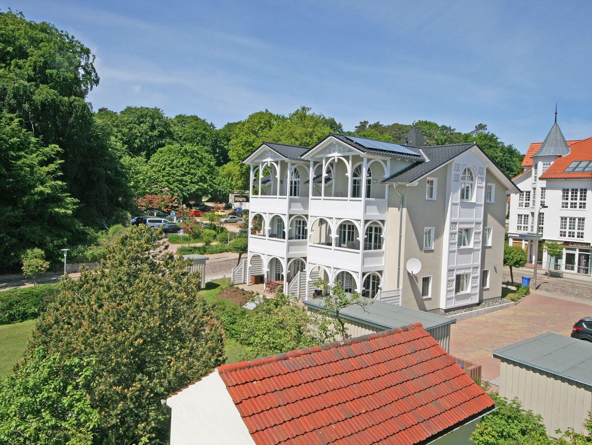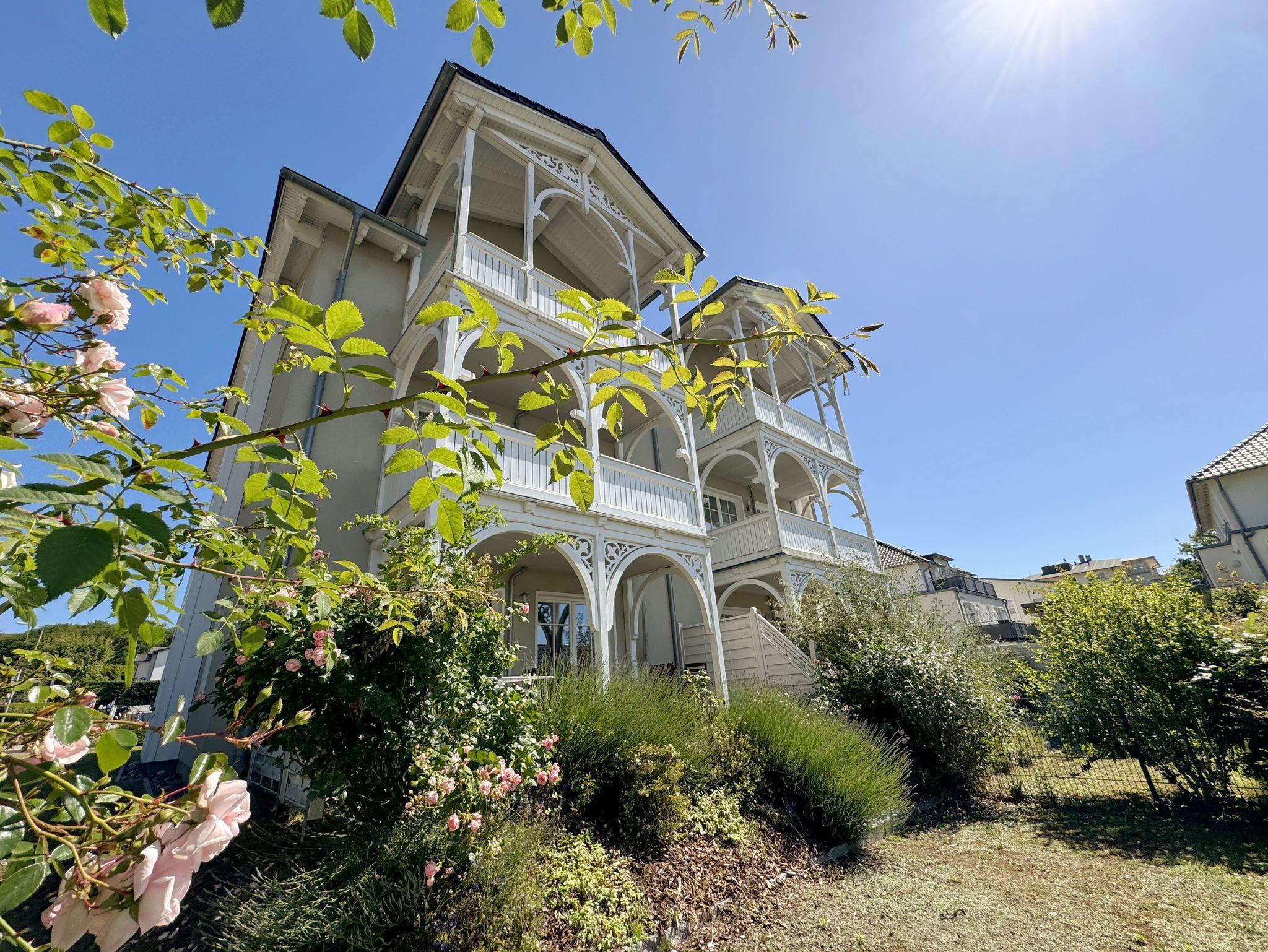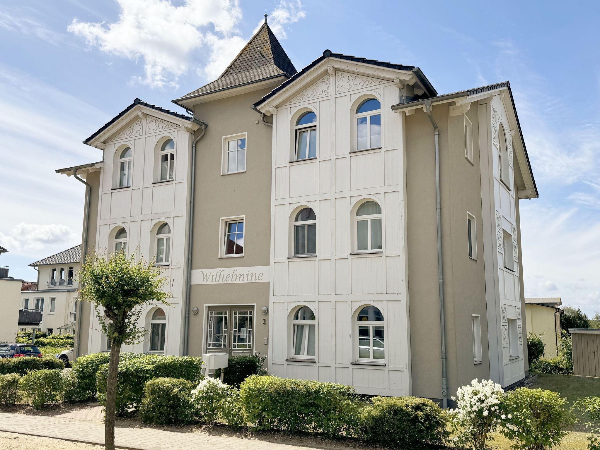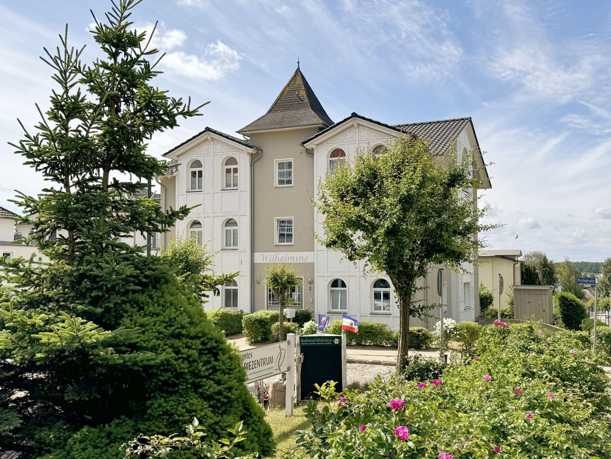 Hochwertige Ferienwohnungsanlage mit großem Komfort - mitten in Sellin befindet sich die Villa Wilhelmine mit Ihren 6 Komfortferienwohnungen, sowie hauseigenen PKW-Stellplätzen. Die Bäderarchitektur und die hervorragende Ausstattung erlauben Ihnen hier Urlaub auf hohem Niveau. Die Wohnung 4 ist mit ihrer Größe von ca. 66 qm und ihren 2 Schlafzimmern ein wahres Highlight im Ferienwohnungsbereich. Die Wohnung befindet sich in der 1. Etage und verfügt über einen Balkon mit Ausrichtung Süd. Nur wenige Gehminuten von Ihnen entfernt befindet sich die Wilhelmstraße (100 m) mit Geschäften, Cafés und Restaurants, sowie die Selliner Seebrücke und herrlichen Sandstrand (600 m). Das Schwimmbad Inselparadies (ca. 1000 m) lädt mit ihrer Badelandschaft bei schlechtem Wetter zum Verweilen ein.