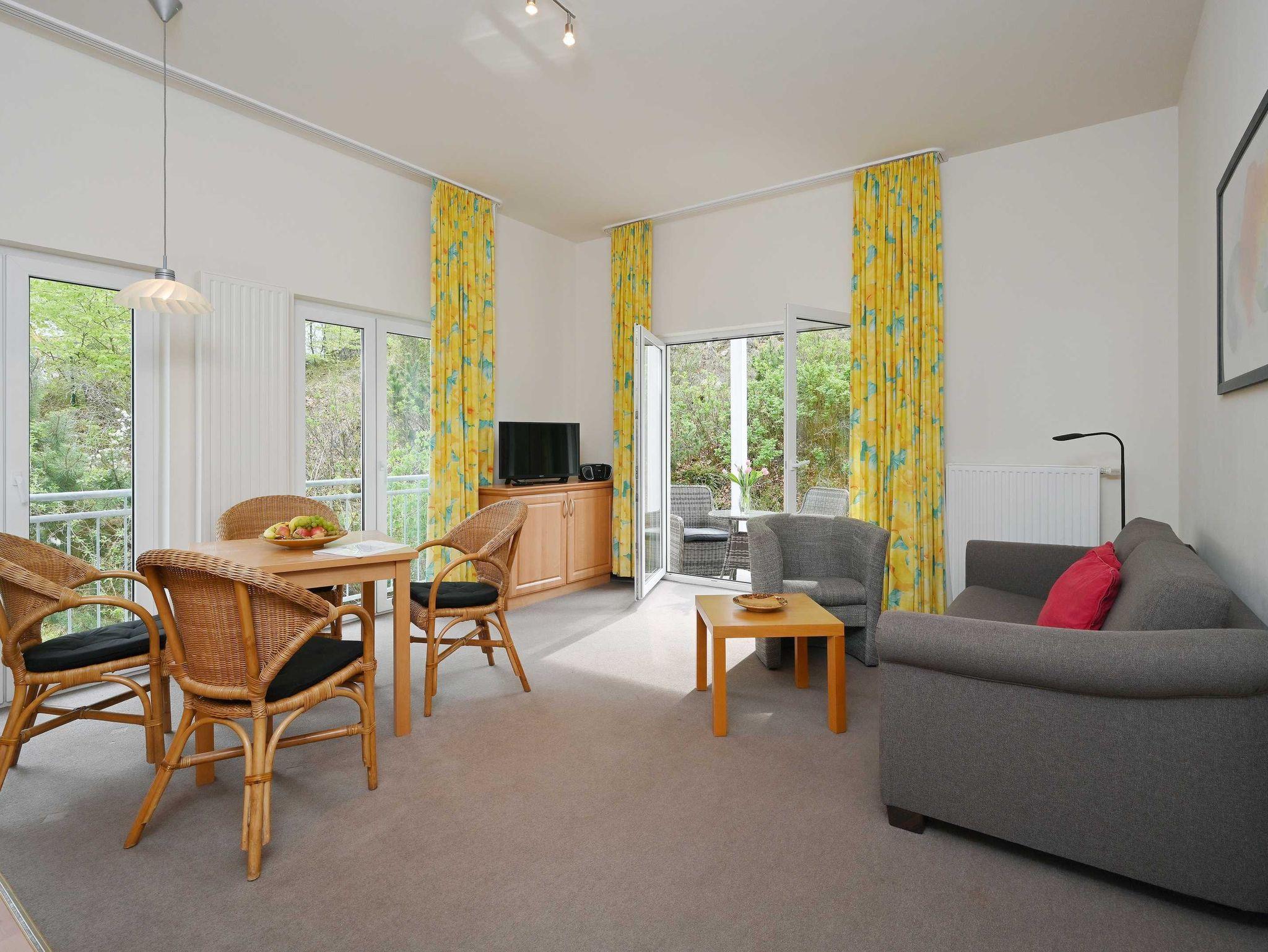 Jede Ferienwohnung ist nach hohen Standards modern und gemütlich eingerichtet und verfügt über einen großzügigen Balkon oder eine Loggia. Von den Ferienwohnungen in den oberen Stockwerken haben die Gäste einen wunderschönen Blick auf die Wilhelmstraße, den Selliner See, die Selliner-Seebrücke und / oder die Ostsee.