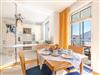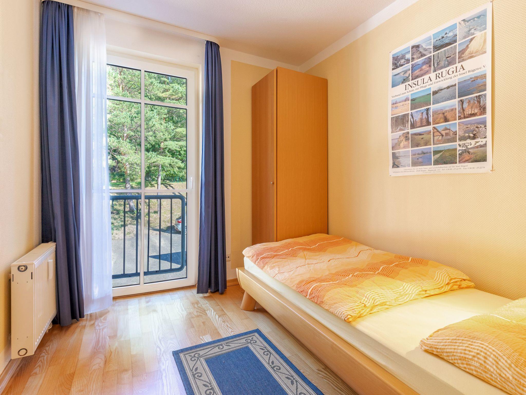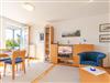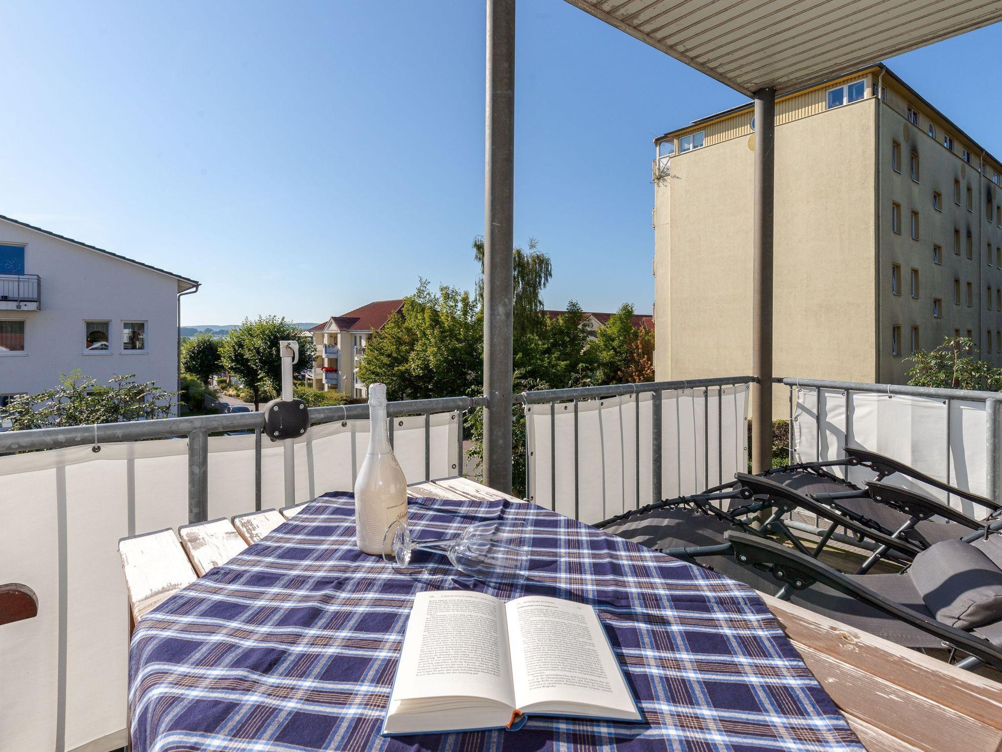 Die Ferienwohnung in Sellin befindet sich in einer ruhigen und dennoch zentralen Lage nahe des Ostseestrandes. Auf einer Wohnfläche von 65 m² bietet sie Platz für einen entspannten Urlaub auf Rügen, unabhängig von der Jahreszeit. Das freundliche Wohn- und Esszimmer verfügt über eine offene Küche und große Fensterfronten, die einen Blick auf die Umgebung ermöglichen. Eine moderne Sofagarnitur lädt zum gemütlichen Ausklang des Tages ein. Der sonnige Balkon ist über das Wohnzimmer erreichbar und mit komfortablen Gartenmöbeln ausgestattet. Hier können Sie die frische Ostseeluft genießen und sich sonnen oder ein entspanntes Frühstück einnehmen. Die Plissees bieten dabei Privatsphäre.