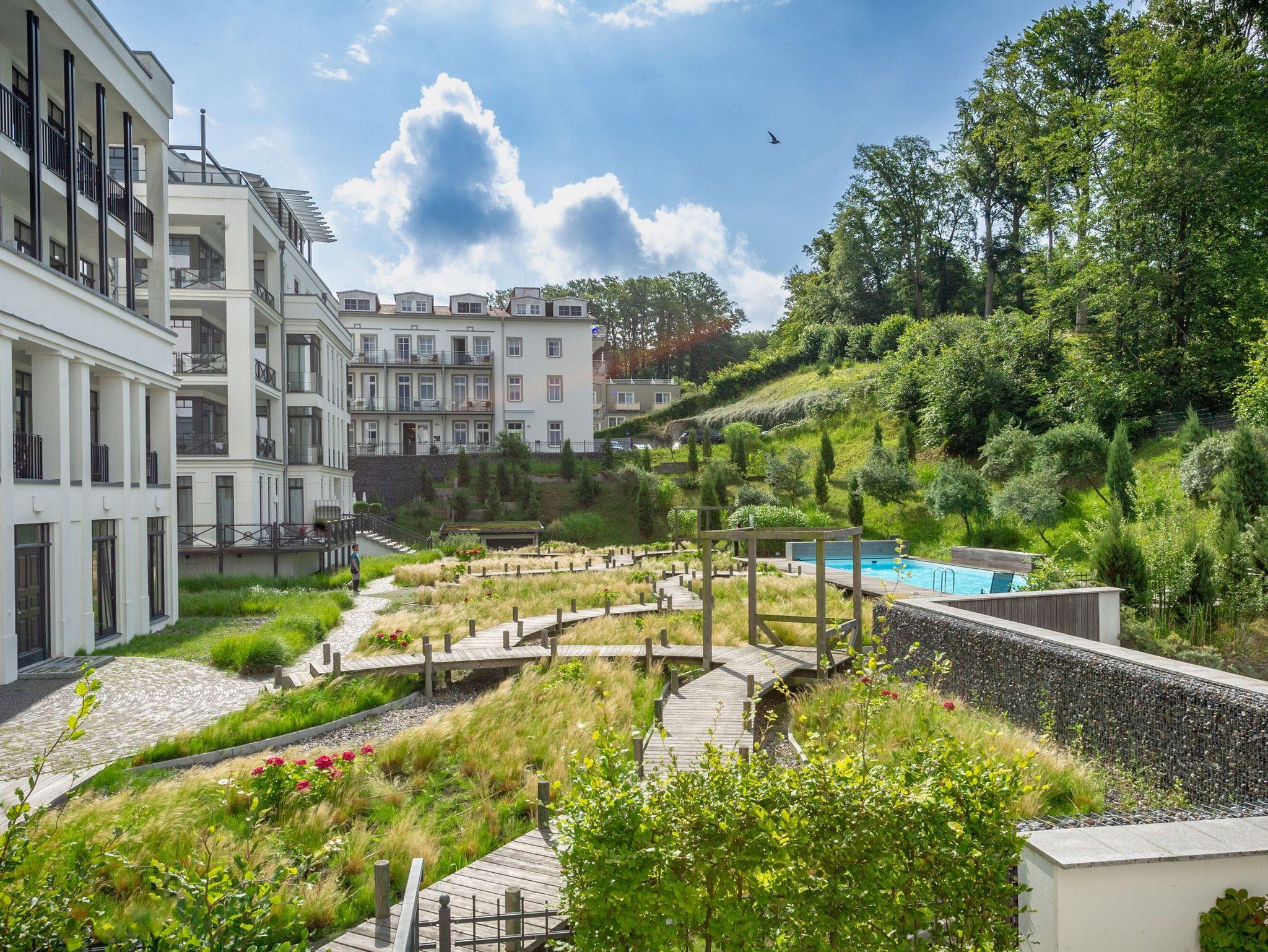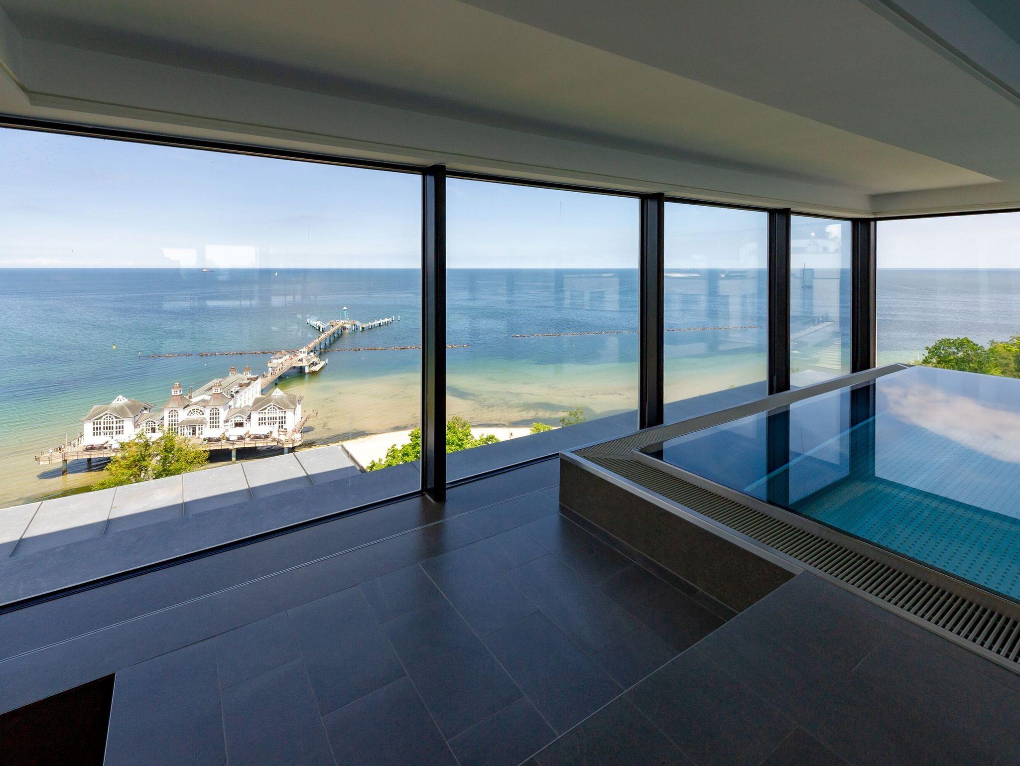 Für Wellness-Freuden der besonderen Art stehen Ihnen im FIRST Sellin der Sky-Pool (12 m x 4,30 m), zwei Saunen sowie eine Sonnenterrasse auf der Dachetage kostenfrei zur Verfügung. In der Sommersaison können Sie darüber hinaus gern auch den solarbeheizten Außenpool im Innenhof des Gebäudekomplexes nutzen.