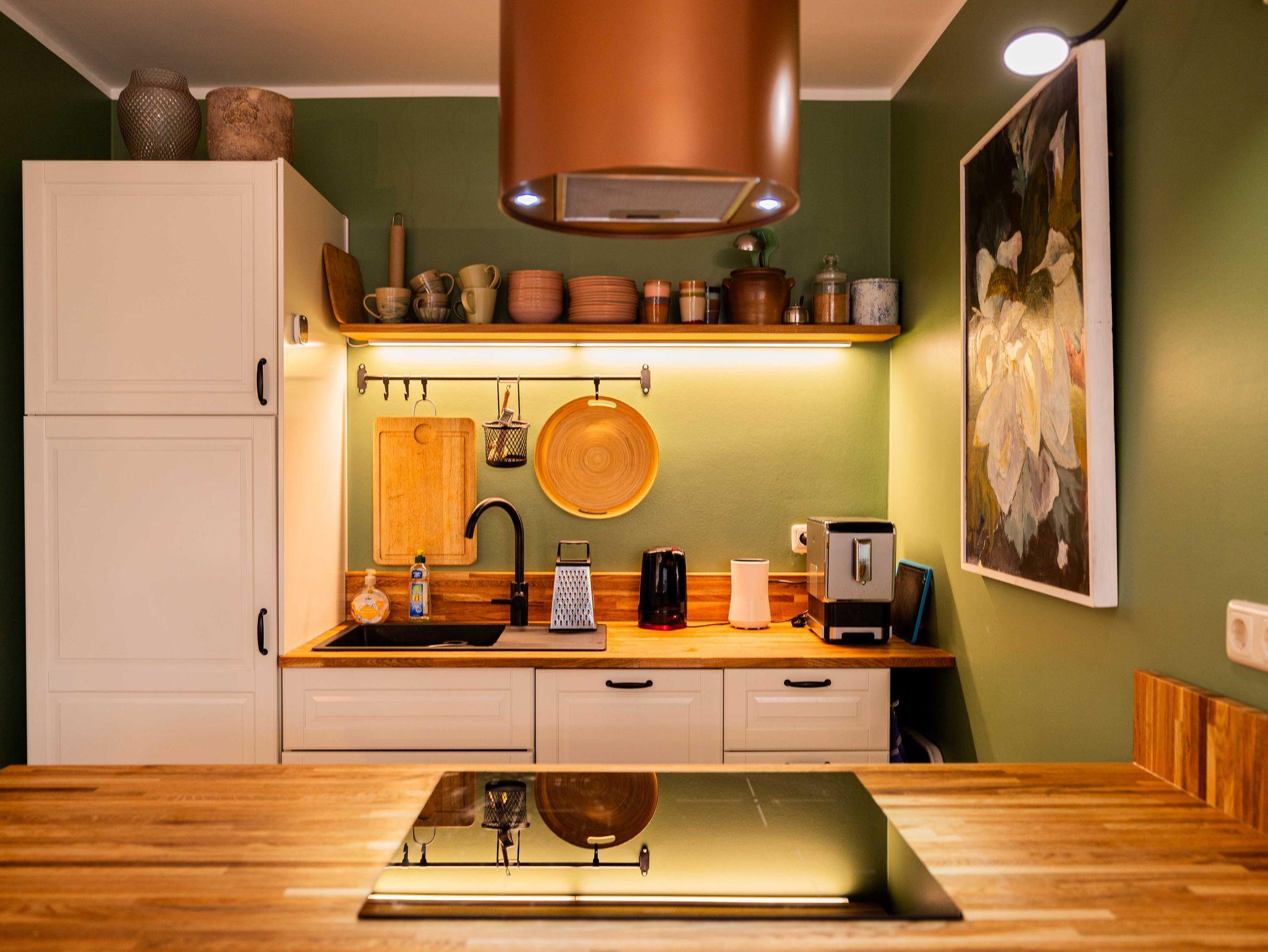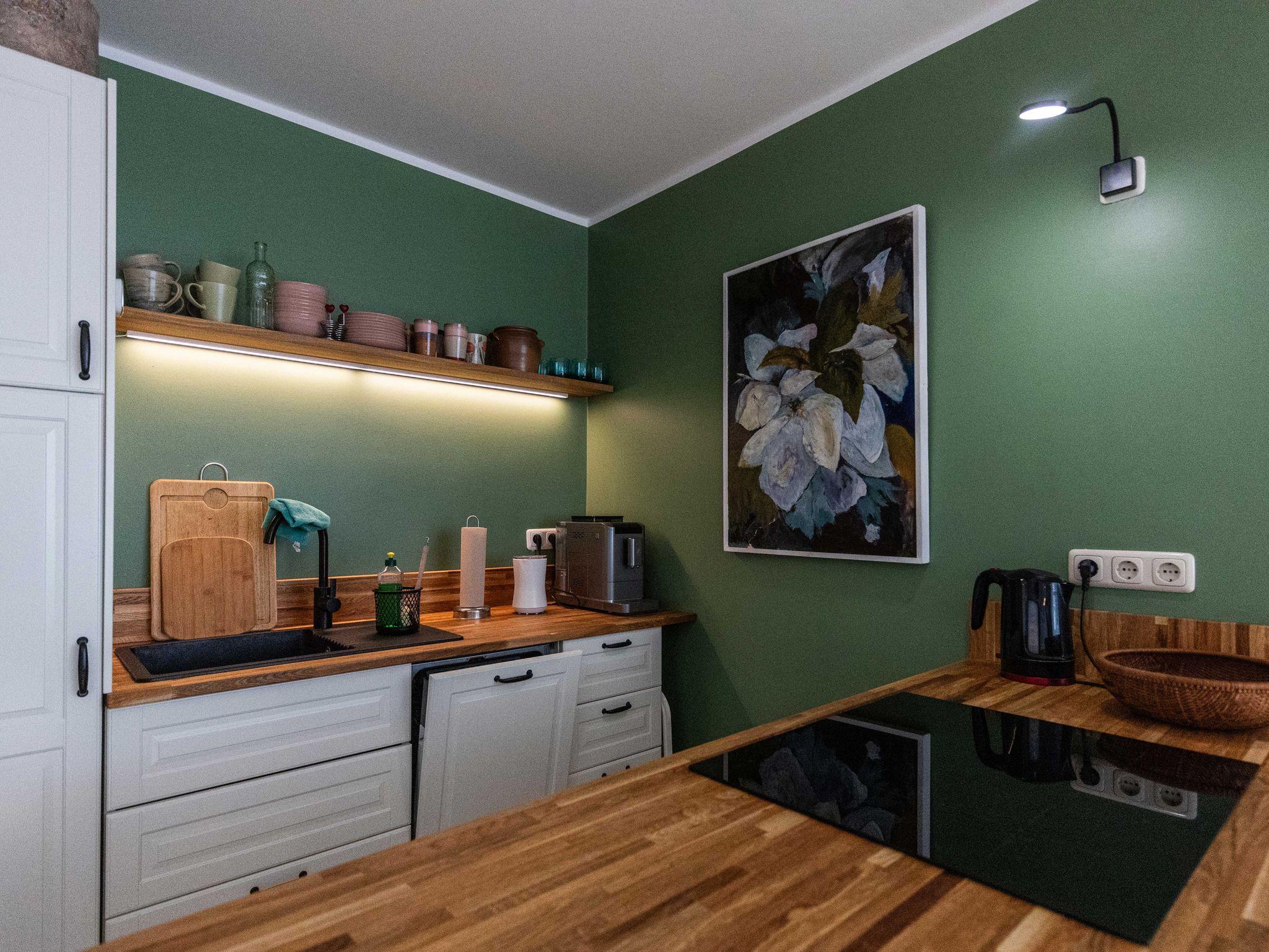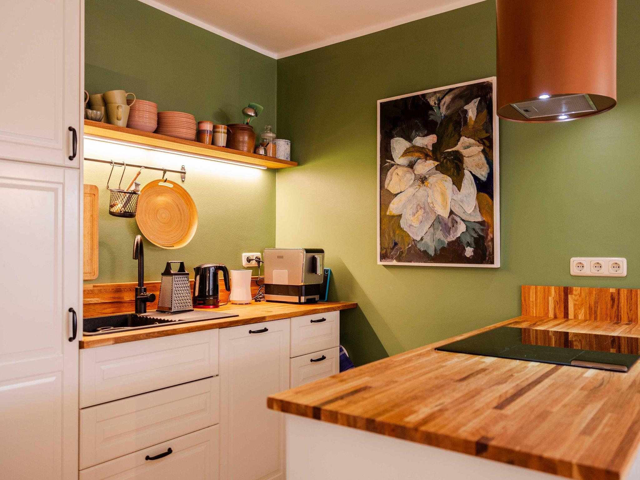 Die Wohnung bietet alles, was einen angenehmen Aufenthalt ermöglicht. Internet ist selbstverständlich und kostenfrei. Die Küche ist ausgestattet mit