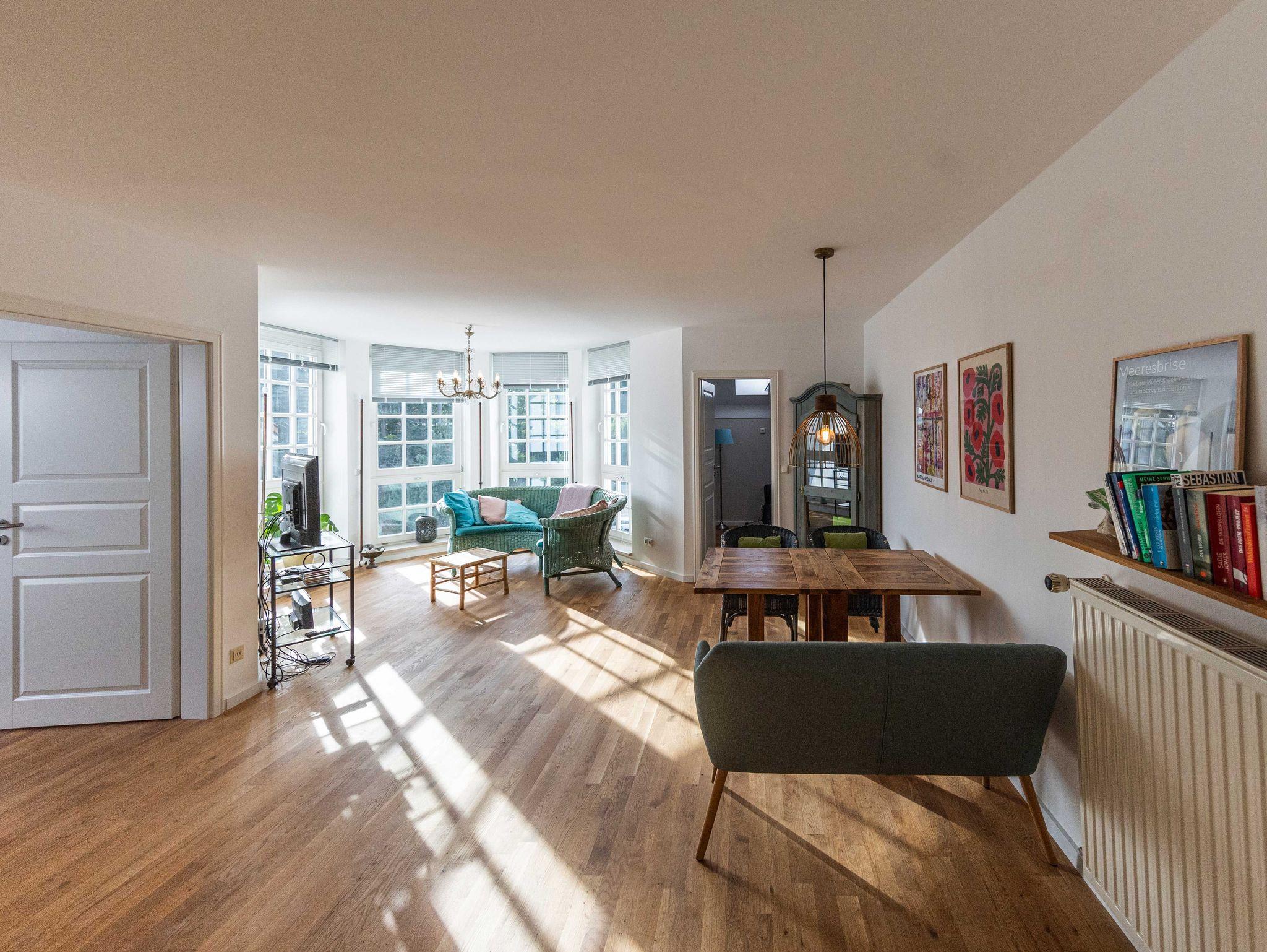 Die bestens ausgestattete Wohnung befindet sich in der 3. Etage des Hauses, welches mit einem Fahrstuhl erreichbar ist.