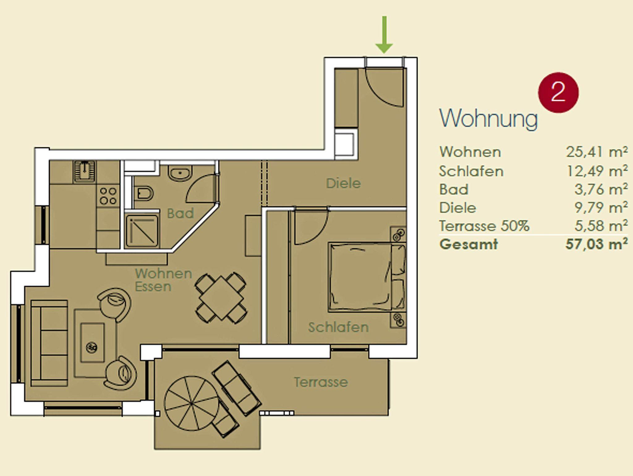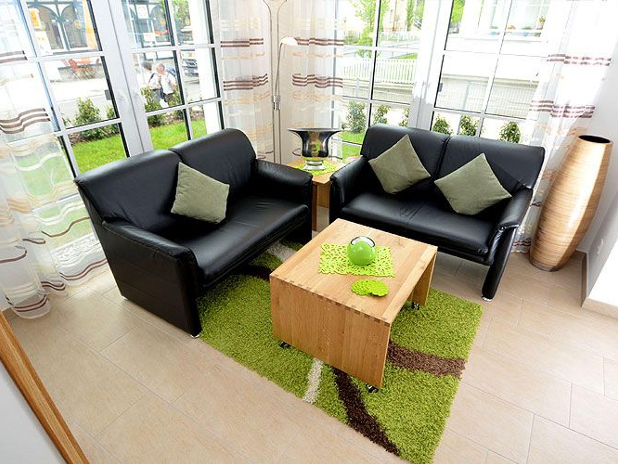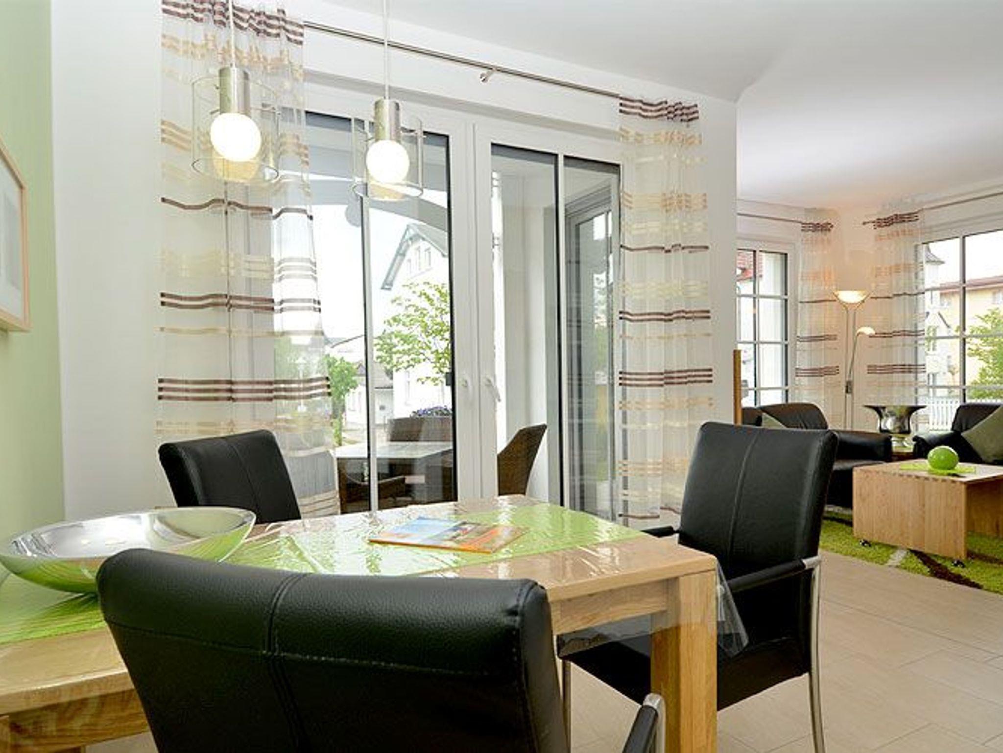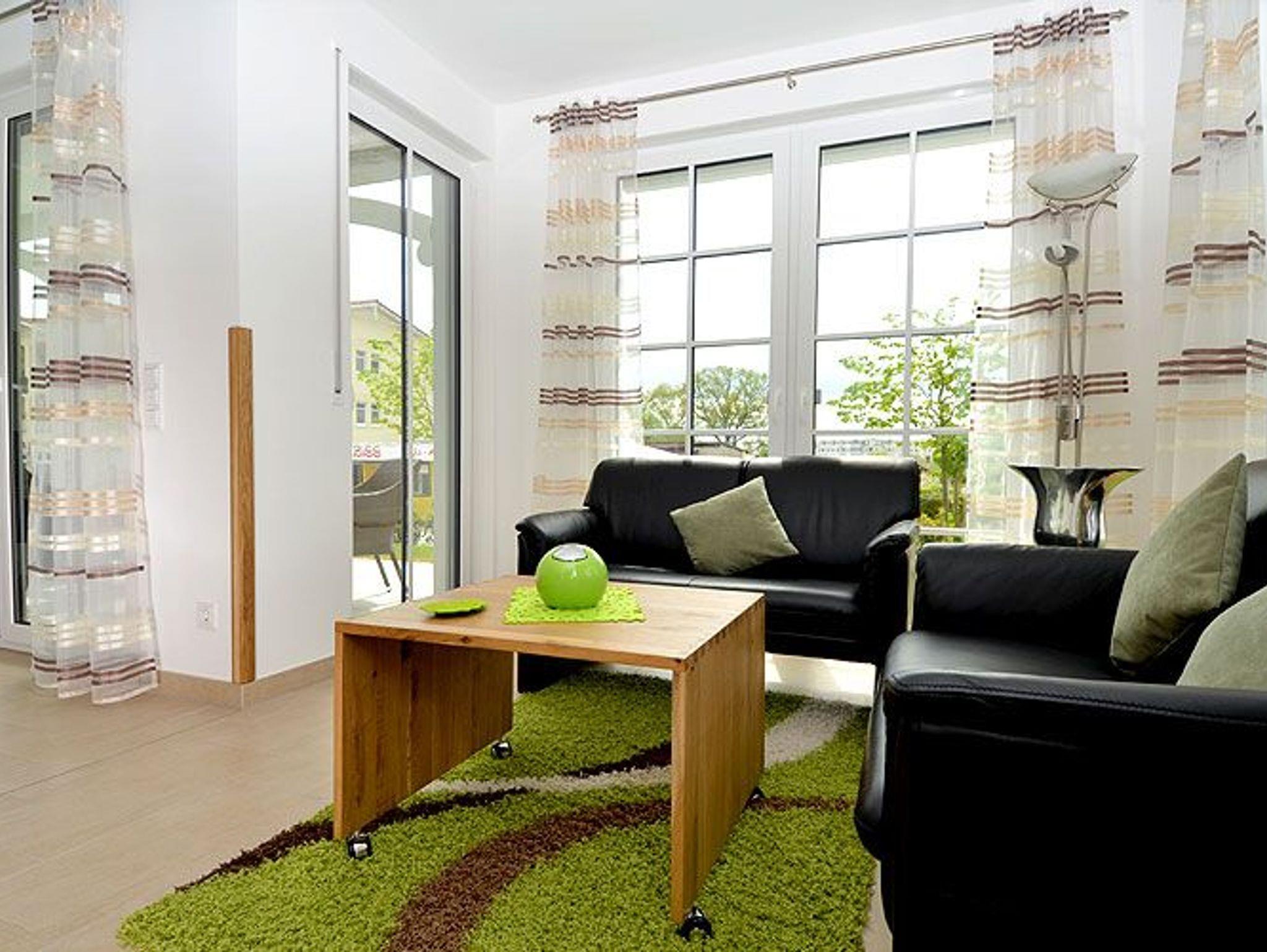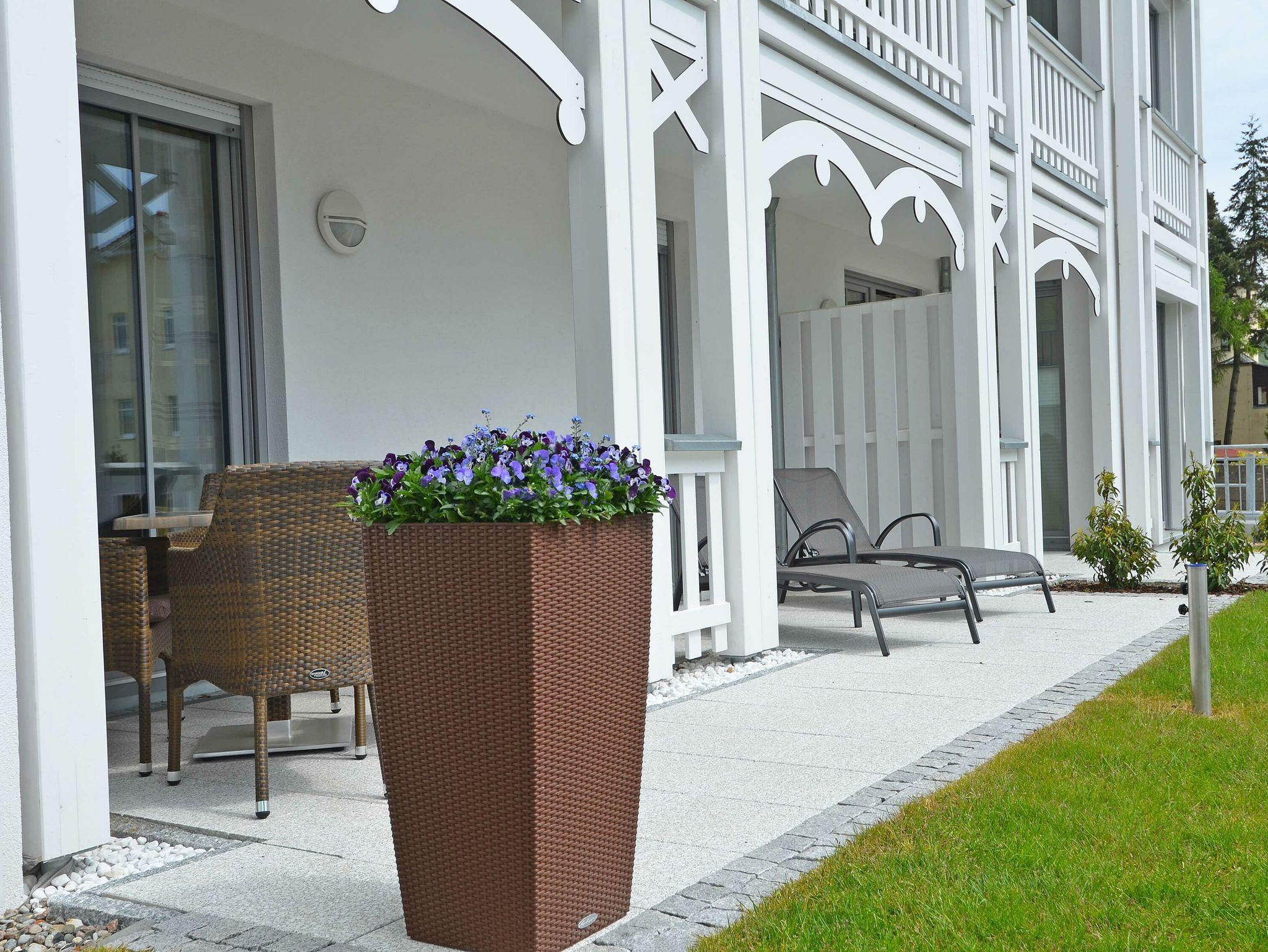 Dieses ca. 57 m² große und geschmackvoll eingerichtete 2-Raum-Appartement befindet sich im Erdgeschoss und hat eine große Terrasse zur Südseite, auf der Sie vom Mittag bis zum Abend die Sonne genießen können. Ein Strandkorb und Terrassensitzmöbel stehen zur Verfügung.