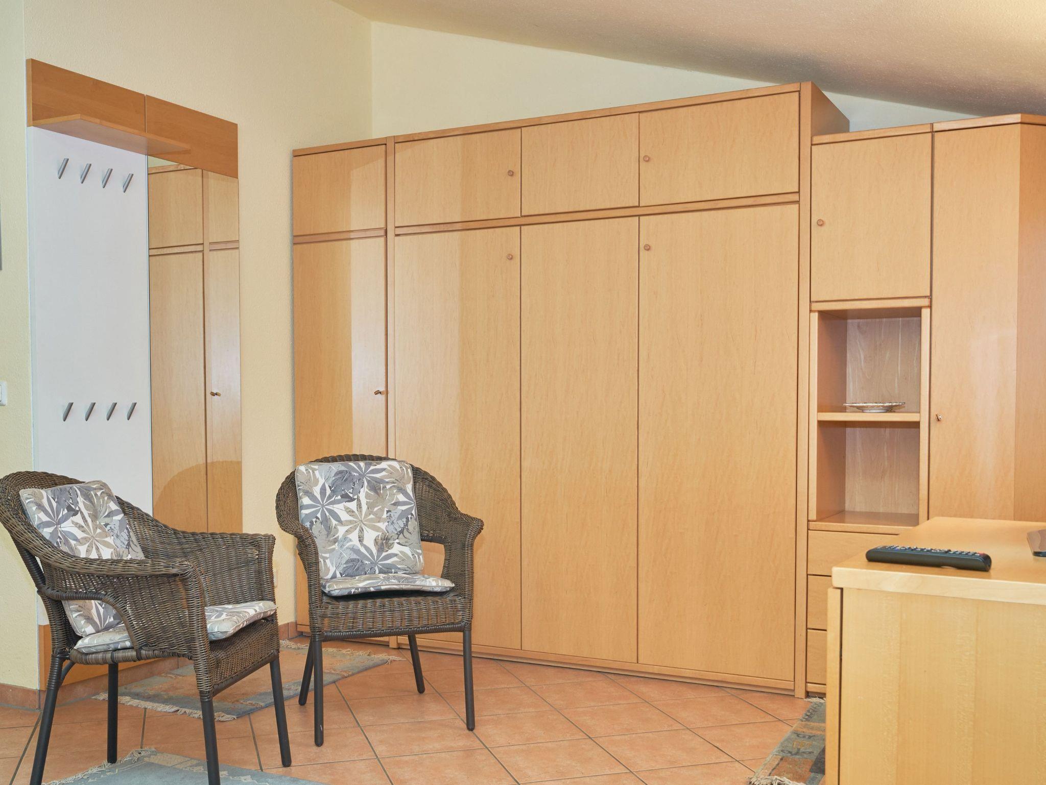 Die Ferienwohnung verfügt über kostenfreies WLAN und die Erstausstattung an Bettwäsche ist inklusive. Der kombinierte Wohn-/Schlafbereich mit Verdunklung verfügt über ein Schrankbett. Darüber hinaus verfügt die Ferienwohnung über ein Bad mit Dusche/WC. Die voll ausgestattete Pantry mit Kaffeemaschine und Toaster lässt keine Wünsche offen. Ein Fernseher inkl. 3 Sky-Sender rundet die gute Einrichtung ab. Im Nichtraucher-Apartment ist ein mitreisendes Haustier gestattet.