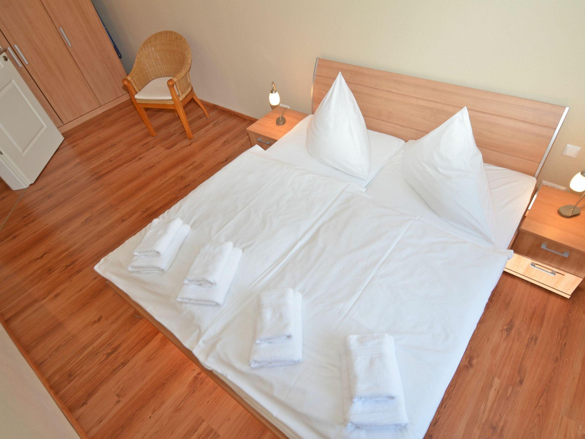 Weiterhin gibt es zwei Schlafzimmer mit je einem Doppelbett und ausreichend Platz für Ihre Garderobe sowie ein modernes Bad mit Dusche/WC und einem Haartrockner.