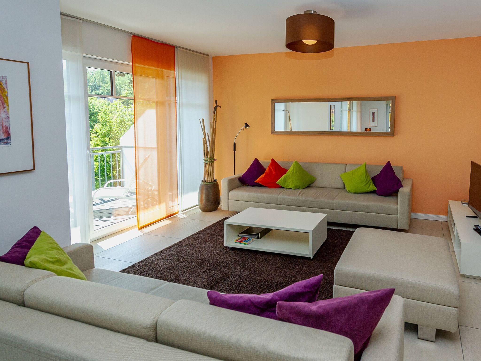 Der Wohnbereich ist unter anderem mit einem Smart-TV und einer Stereoanlage mit CD-/DVD-Player sowie mit einem Kamin ausgestattet. Ein Internetanschluss per LAN und W-LAN steht kostenlos zur Verfügung.