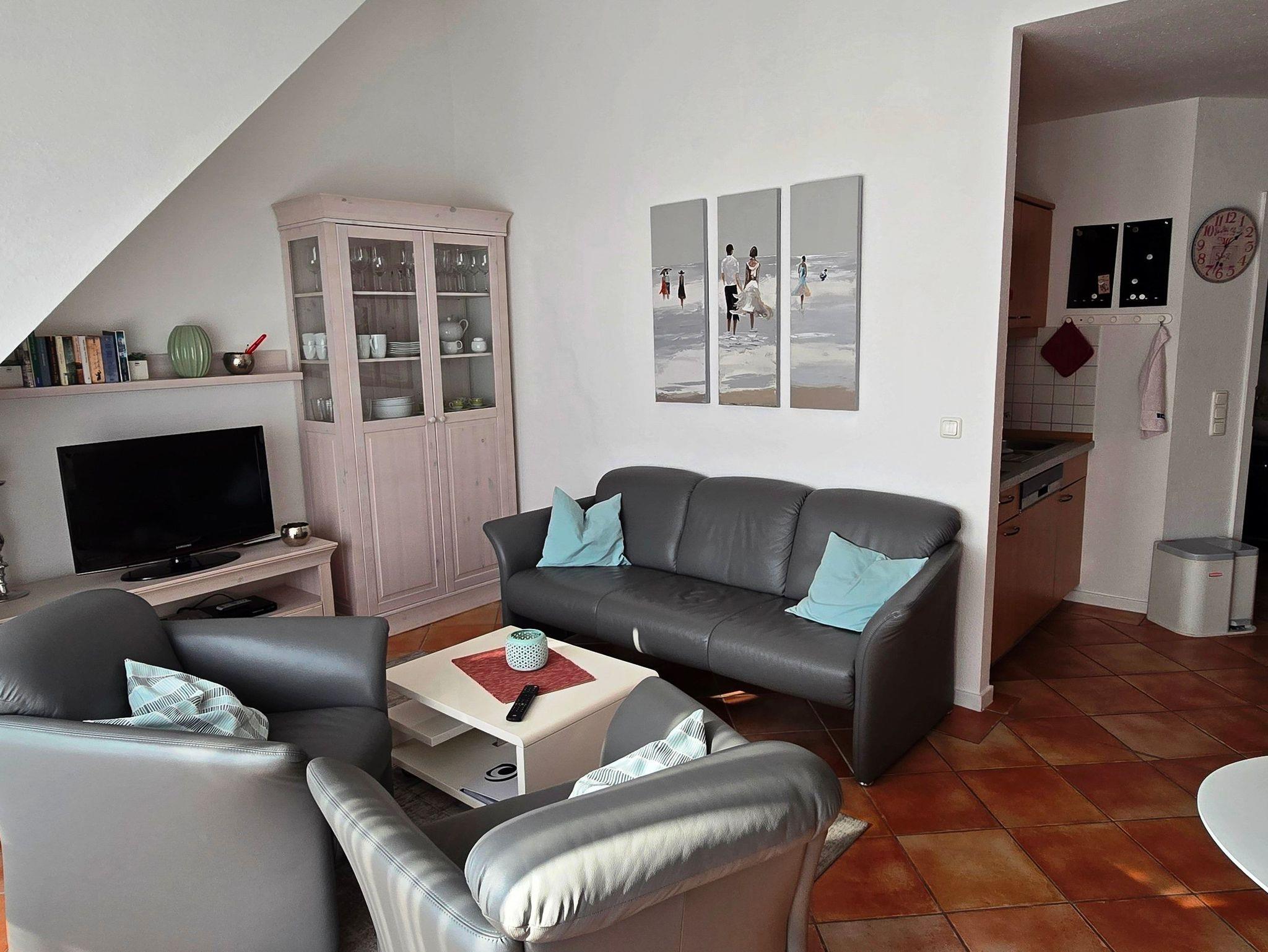 Große offene Maissonette Wohnung mit Balkon und Blick auf den Neuensiener See. Im oberen Teil befindet sich ein Doppelbett und kleines Kinderschlafzimmer. Im unteren Teil ist das Wohnzimmer mit Küchenzeile und anschließendem Bad mit Dusche , WC. Balkon mit Sitzgelegenheiten. Die Betten sind bei Anreise bezogen. Handtücher, soweit nicht selbst mitgebracht, können zusätzlich gemietet werden.