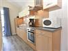 Die harmonisch im Wohnbereich integrierte Küchenzeile ist ausgestattet mit einem Kühlschrank mit Gefrierfach, einem 4-Platten-Cerankochfeld, einem Backofen, einer Geschirrspülmaschine, einer Mikrowelle, Wasserkocher, Kaffeemaschine, Toaster und diversem Kleininventar, das die Küchenausstattung komplettiert.