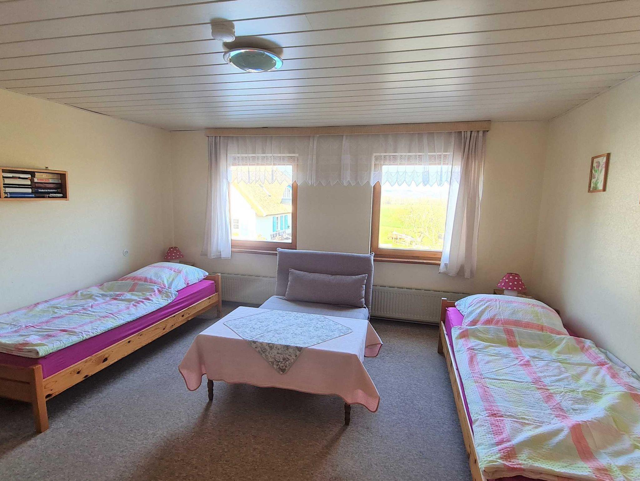 Die Couch in dem zweiten Schlafzimmer kann bei Bedarf als Aufbettung hergerichtet werden. In der Wohnung kann auch ein Internet-WLAN-Anschluß genutzt werden.