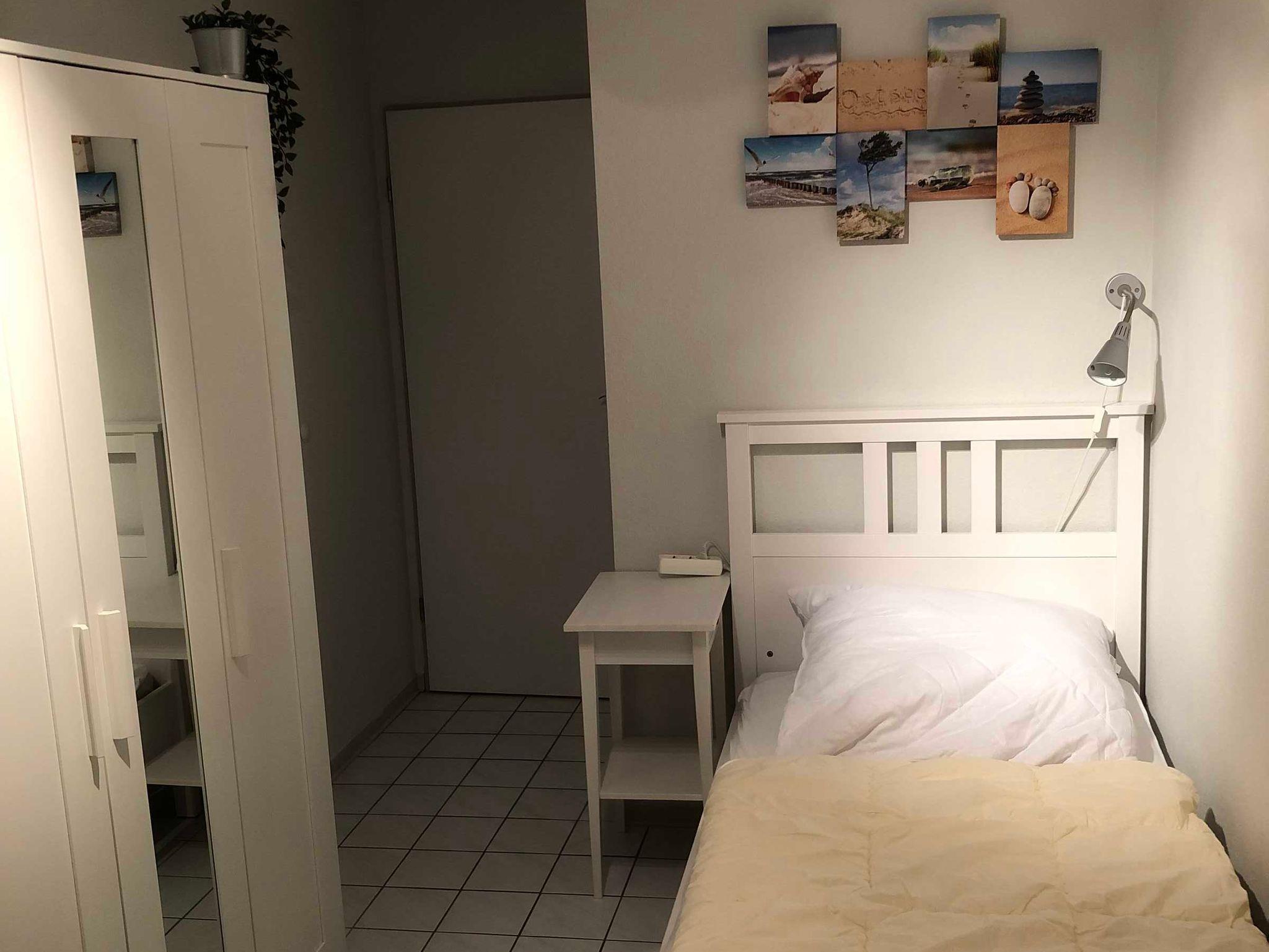 Das 2. Schlafzimmer verfügt über zwei nebeneinanderstehende Einzelbetten (je 90 x 200) mit Ablageflächen. Natürlich gibt es hier auch einen Kleiderschrank.