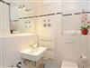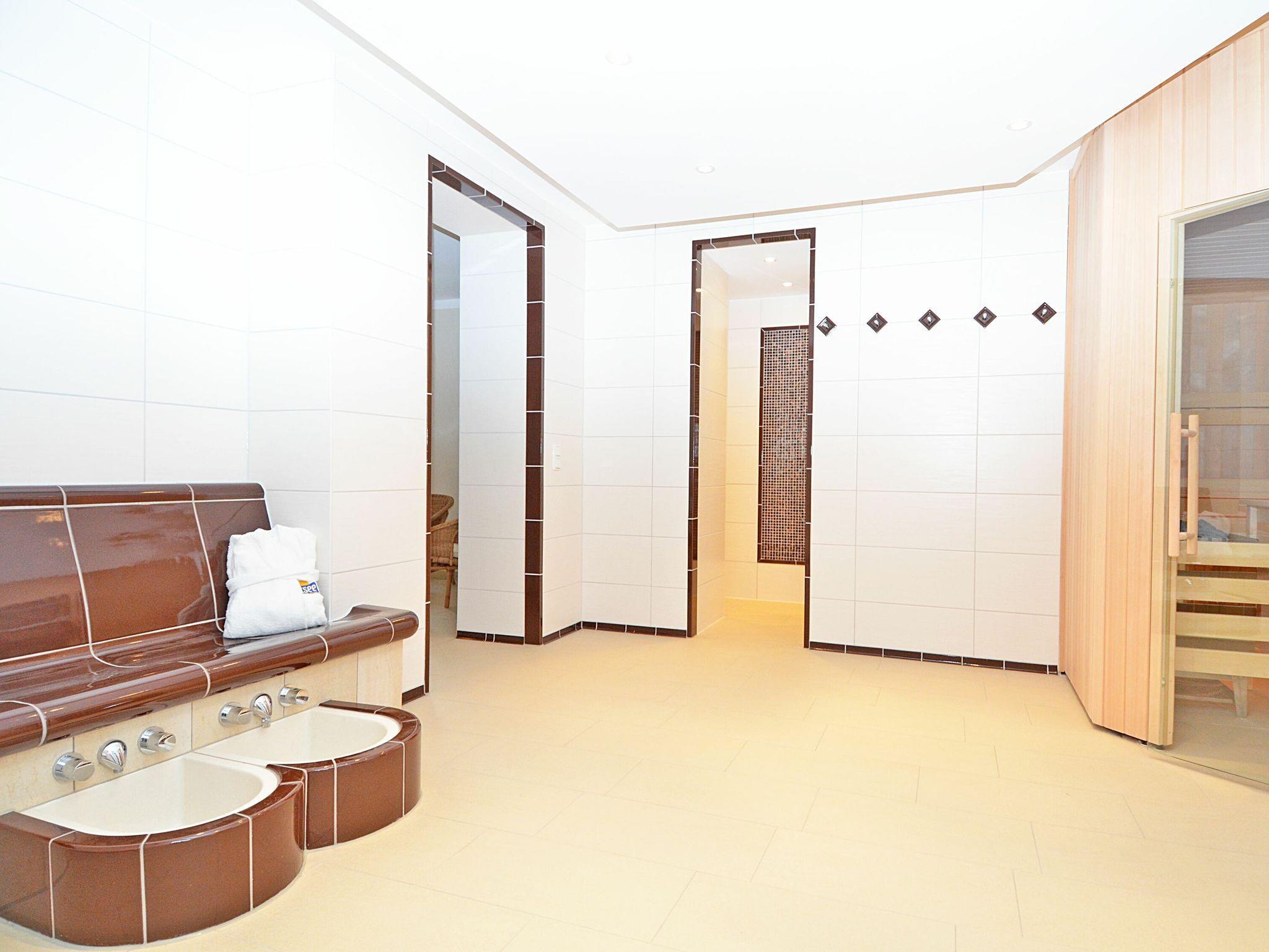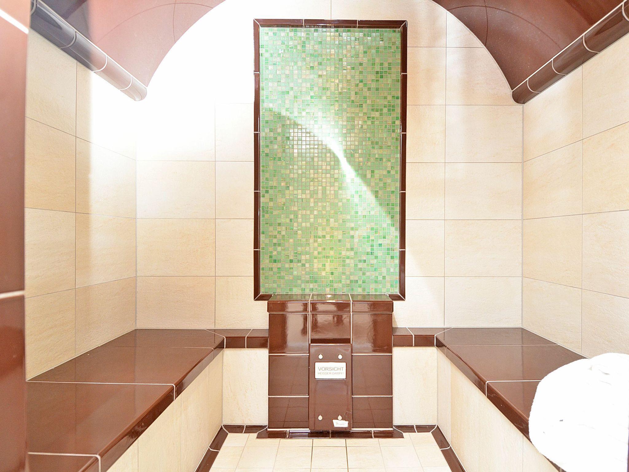 Die Wohnung komplettiert ein modernes Badezimmer, ausgestattet mit einer Badewanne, Handtuchwärmer und Fön. Im Haus wartet darüber hinaus gegen eine kleine Gebühr ein gemeinschaftlich nutzbarer Wellnessbereich mit Sauna und Ruheraum auf Ihren Besuch.