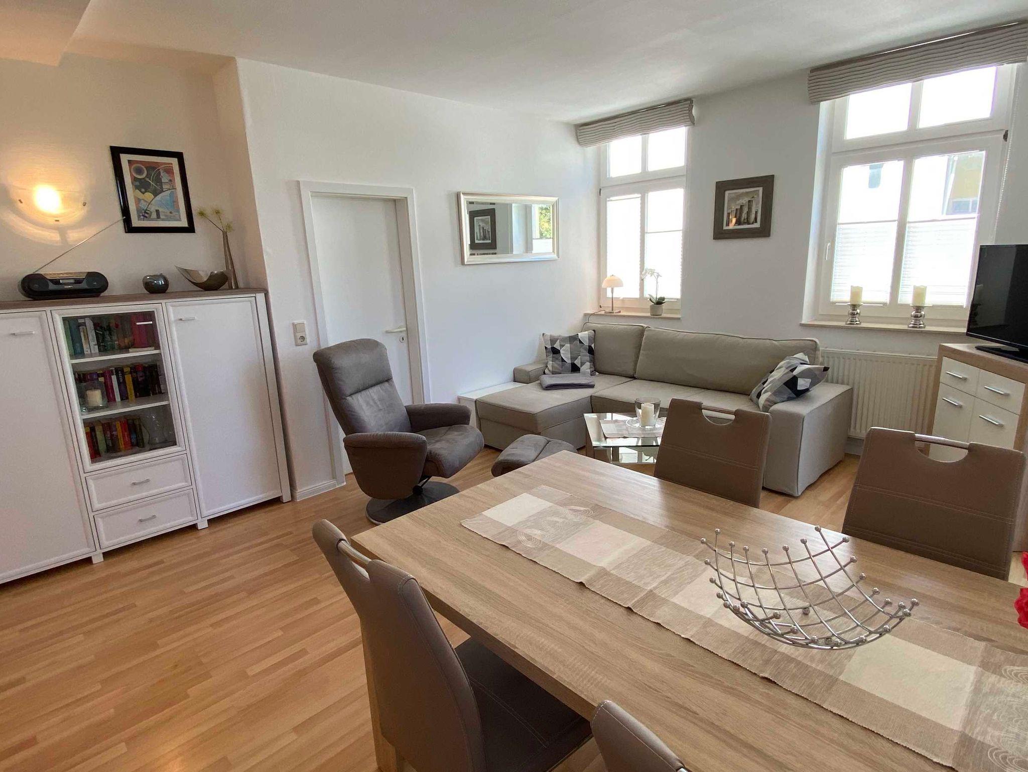 Der großzügige 52 qm große Ferienwohnung mit 43/ 109 cm SMART-LED Farb -TV Flachbildschirm und TechniSat Digitalradio lädt Sie zum Entspannen ein. Ein kostenloser WLAN Anschluss ermöglicht es Ihnen im Internet zu surfen.