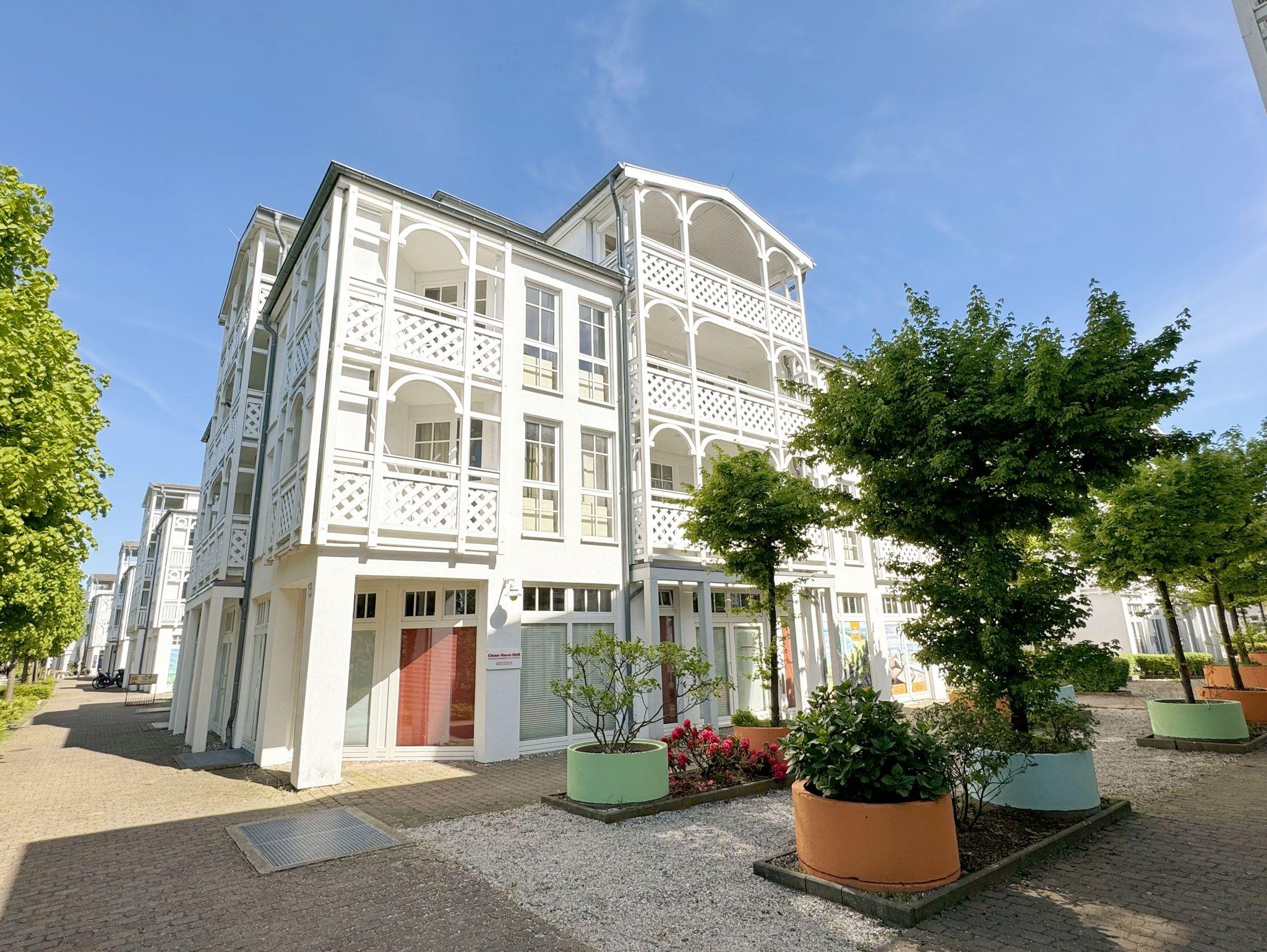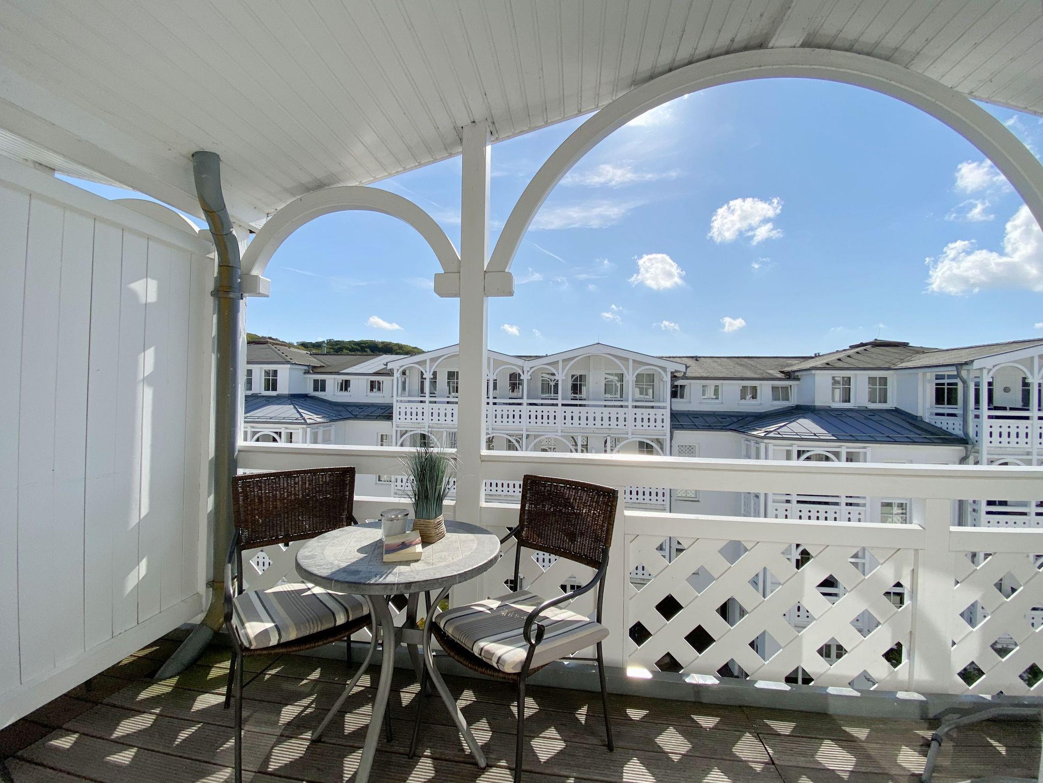 Beginnen Sie die Tage Ihrer schönsten Zeit des Jahres mit dem Frühstück auf dem Balkon in der Morgensonne. Ihre helle Ferienwohnung 550 befindet sich im Dachgeschoss und verfügt über einen großen Balkon mit Ausrichtung gen Osten. Der gepflegte Seepark Sellin mit seinen weißen Häusern wurde in klassischer Bäderarchitektur erbaut. Die in der Anlage beginnende Seeparkpromenade führt Sie bequem zum Ortskern über die anschließende Wilhelmstraße direkt zum Strand und der berühmten Seebrücke. Der Südstrand ist ca. 750 m entfernt. Nutzen Sie die Bäderbahn als Shuttle zu den beiden Stränden. Der Seepark bietet zu jeder Jahreszeit einen abwechslungsreichen und erholsamen Aufenthalt. Nebenan befindet sich das ganzjährig geöffnete Erlebnisbad Ahoi! mit Wasserattraktionen sowie Sauna- und Wellnessangeboten. Restaurants, Einkaufsmöglichkeiten und die Haltestellen der Schmalspurbahn Rasender Roland, der Linienbusse und der Bäderbahn (mit Kurkarte kostenlos) befinden sich in der Anlage. Und dann gibt es ja auch noch die Schiffsverbindungen. Von der Selliner Seebrücke aus können Sie z. B. direkt nach Sassnitz, Binz oder Göhren zum Nachmittagsbummel übersetzen oder Sie entscheiden sich für eine Rundfahrt und schippern Richtung Kap Arkona zur legendären Kreideküste und den spektakulären Königsstuhl.